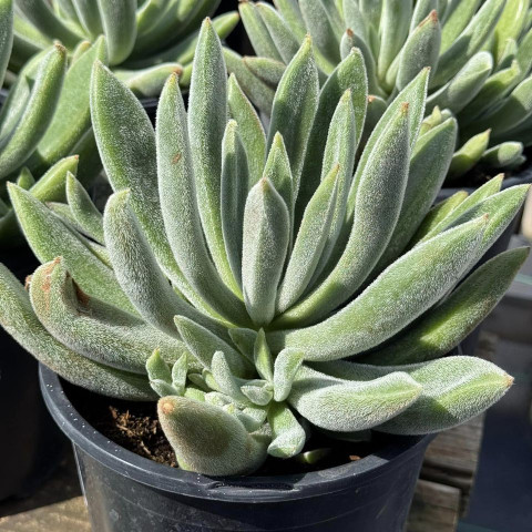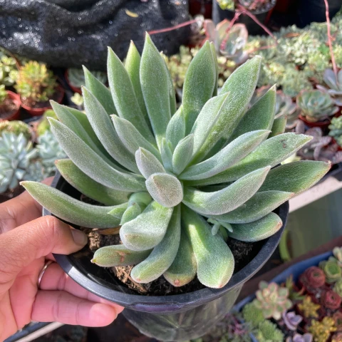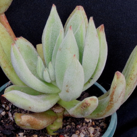 Echeveria ‘Icycle’, Crassulaceae familyasına ait, açık buz mavisi tonları ile bilinen bir hibrit kültivardır. Echeveria agavoides ve Echeveria leucotricha'nın çaprazlanması sonucu elde edilen bir melezdir. İsmindeki “Icycle” ifadesi, yaprak renginin soğuk ve pastel görünümüne gönderme yapar. Bitki kompakt, simetrik ve yere yakın gelişen rozet oluşturur. Genç dönemde gövde görünmez durumdadır; zamanla alt yaprakların kurumasıyla kısa bir gövde belirginleşebilir. Uygun koşullarda rozet sıkı ve düzenli kalır. Yaprak yüzeyi genellikle yoğun farina (pudramsı mumsu kaplama) ile kaplıdır. Bu kaplama bitkiye mat, donuk ve buzlu bir görünüm kazandırır. Renk tonları açık mavi, soluk gri-mavi ve bazen hafif lavanta alt tonlu olabilir. Güçlü ışık koşullarında yaprak kenarlarında pembe ya da kırmızımsı bir hat oluşabilir. Farina tabakası temasla kolayca zarar görebilir ve kalıcı izler bırakabilir.