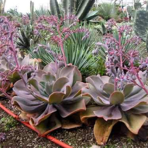 Toprak seçimi hızlı drenaj sağlayacak şekilde yapılmalıdır. Sukulentler için hazırlanmış, mineral oranı yüksek ve su tutma kapasitesi düşük karışımlar uygundur. Ağır ve suyu uzun süre tutan toprak kök çürümesine yol açabilir. Geniş rozet yapısı nedeniyle kök bölgesinin uzun süre nemli kalması risk oluşturabilir. Sulama yalnızca toprak tamamen kuruduğunda yapılmalıdır. Yüzey kuruluğu yeterli değildir; alt katmanların da kuru olduğu kontrol edilmelidir. Sulama sırasında rozet merkezine su dolmamasına dikkat edilmelidir. Yaprak aralarında su birikmesi mantari problemlere zemin hazırlayabilir. Saksı boyutu bitkinin gelişim potansiyeline uygun seçilmelidir. Geniş rozet yapısı nedeniyle yeterli alan sağlanmalı, ancak gereğinden büyük saksılar tercih edilmemelidir. Drenaj deliği bulunan saksılar kullanılmalı ve mümkünse toprak saksı tercih edilmelidir. Çiçeklenme döneminde rozet merkezinden uzun bir çiçek sapı yükselir. Sap üzerinde çan formunda, genelliklepembe veya turuncu tonlu çiçekler oluşur. Çiçeklenme bitkinin genel sağlığı ve ışık düzeyi ile ilişkilidir.