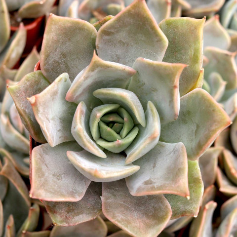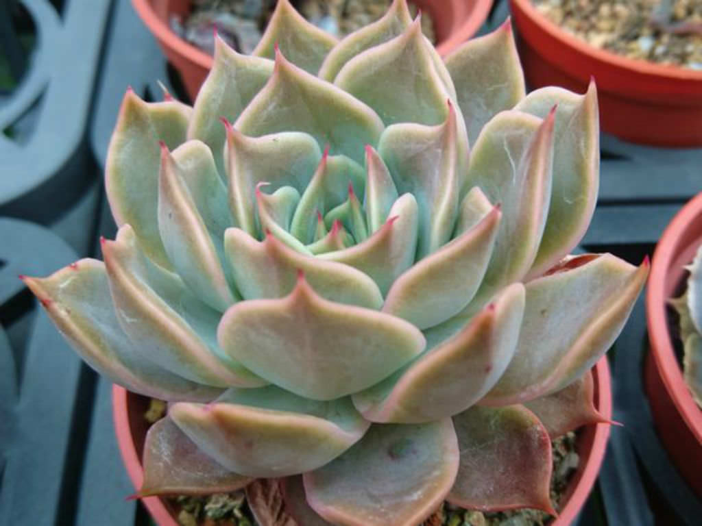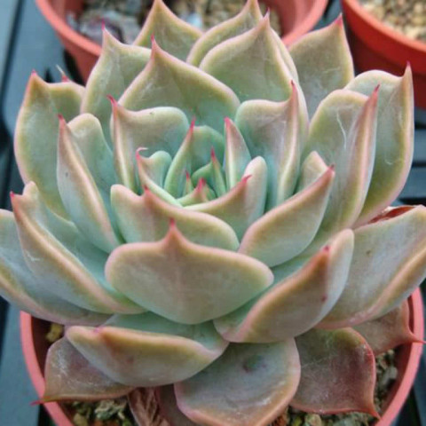 Echeveria ‘Latte Rose’, yumuşak toprak tonları ile pastel pembe geçişleri bir araya getiren, dengeli rozet formuna sahip zarif bir türdür. Echeveria 'Latte Rose', Kelly Griffin tarafından Echeveria agavoides ve Echeveria lilacina türlerinin çaprazlanmasıyla oluşturulmuş bir melezdir. Bu çeşit, kompakt gelişim gösteren ve katmanlı yaprak dizilimiyle estetik bir simetri oluşturan Echeveria grupları arasında yer alır. Sağlıklı bitkilerde rozet sıkı yapıdadır ve yapraklar merkezden dışa doğru düzenli spiral formda yerleşir. Zamanla dipten yavru vererek kümelenme eğilimi gösterebilir.