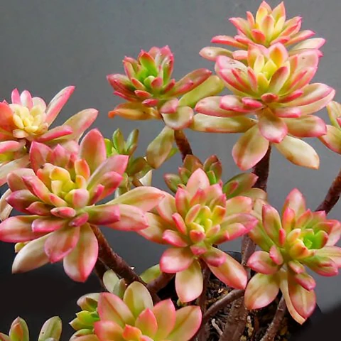 Çoğaltma işlemi yaprak çeliği ya da rozet ayırma yöntemiyle yapılabilir; ancak variegasyonlu formlarda yaprak çeliğinden elde edilen yeni bitkiler her zaman alacalı desen göstermeyebilir. Rozetli yan sürgünlerin ayrılması, desenin korunması açısından daha güvenilir yöntemdir. Köklendirme sürecinde aşırı sulama yapılmaz.
