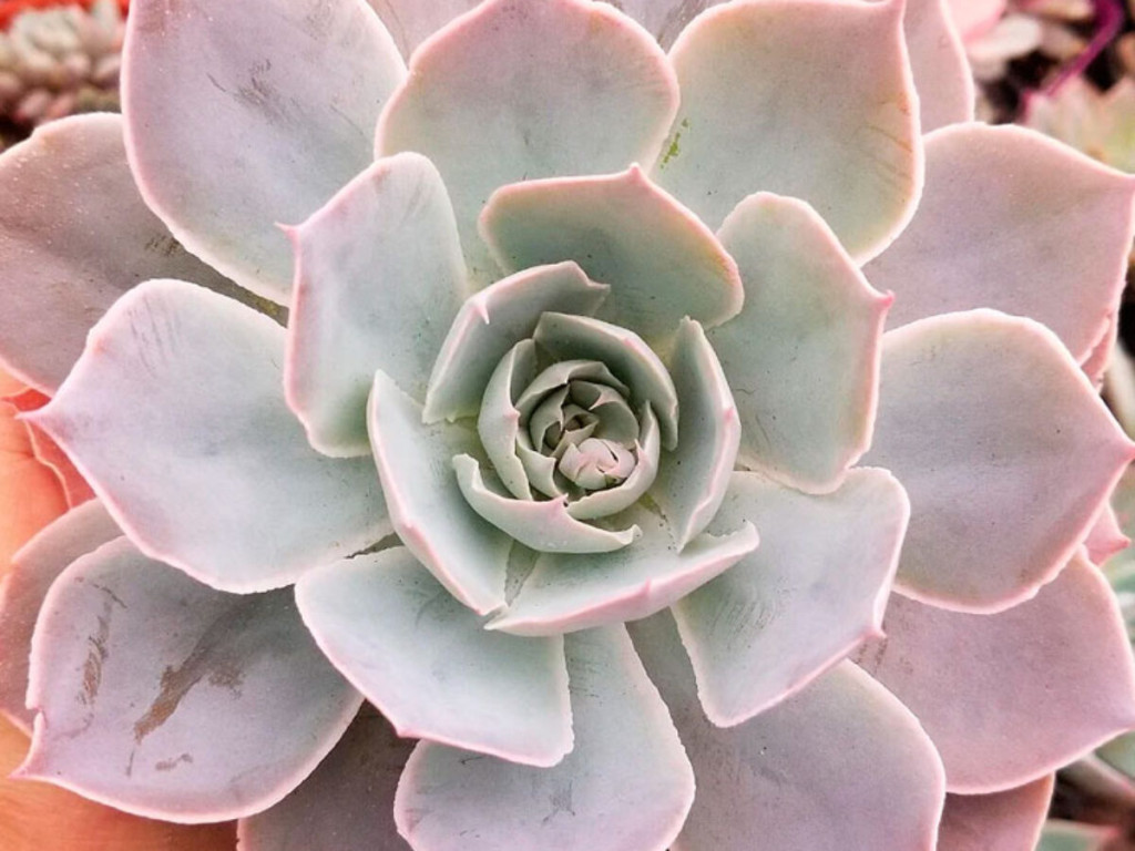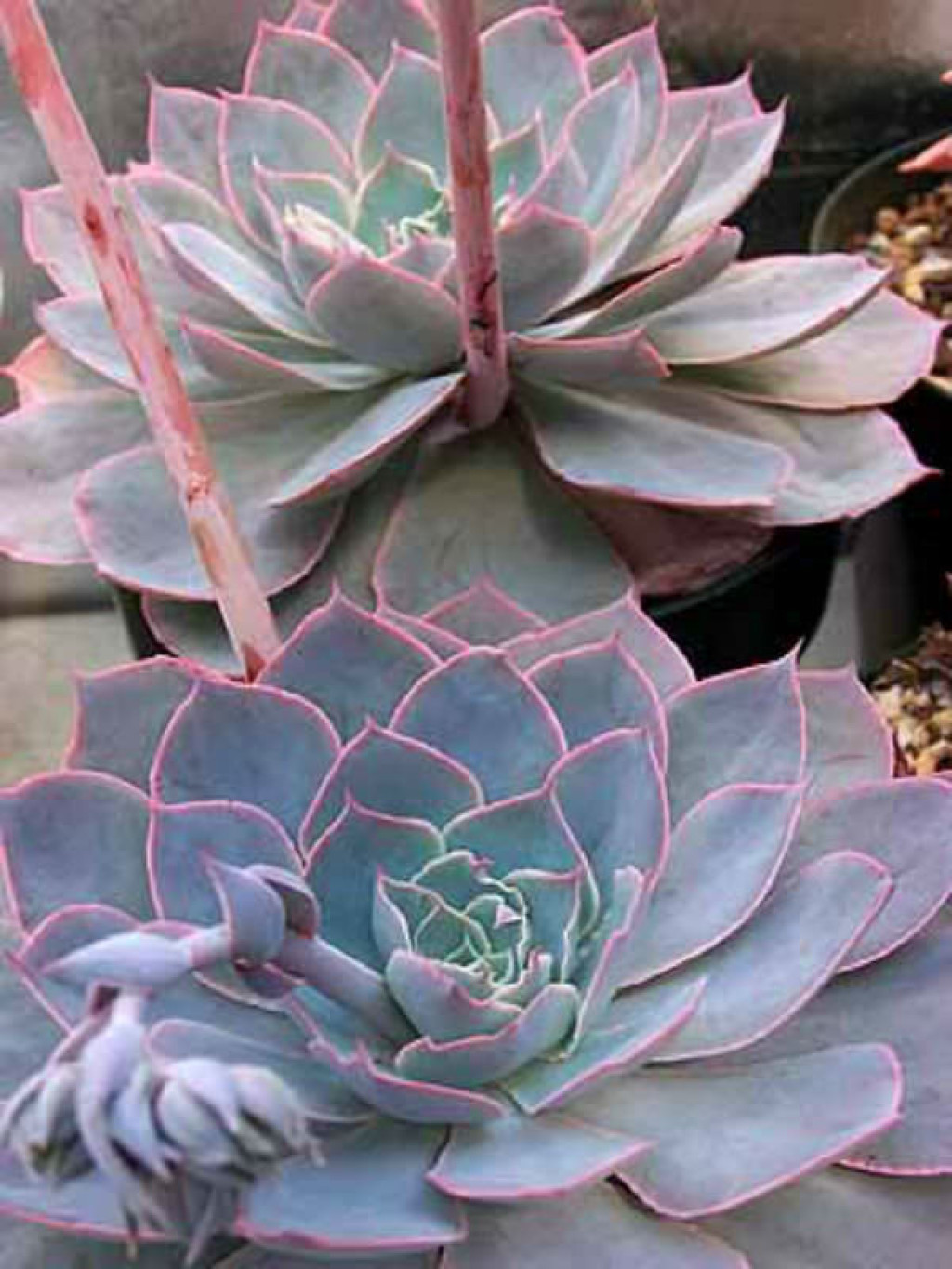 Echeveria ‘Morning Light’, pastel tonları ve zarif dalgalı yaprak kenarlarıyla dikkat çeken bir türdür. İsmini, sabah ışığında belirginleşen yumuşak pembe kenar geçişlerinden alır. Bu bitki, Echeveria cante ve Echeveria shaviana'nın çaprazlanması sonucu ortaya çıkmıştır ve Echeveria 'Afterglow'un kardeş fidesidir. Rozet yapısı geniş ve katmanlıdır; olgun bir bitki 15–20 cm çapa ulaşabilir. Yapraklar kalın, etli ve üst üste dizilmiş yapıdadır. Kenar kısımlarda hafif kıvrım ve fırfırlı görünüm bulunur; bu özellik bitkiye hacimli ve romantik bir form kazandırır. Yaprak rengi genellikle açık mavi-gr tonlarındadır. Kenar çizgilerinde belirgin pembe veya gül kurusu renklenme görülebilir. Güçlü ışık altında bu pembe hat daha canlı hale gelir; düşük ışıkta ise kenar pigmentasyonu zayıflayabilir. Yaprak yüzeyinde doğal mumsu kaplama bulunur. Bu tabaka bitkinin su kaybını azaltır ve pastel görünümünü korur. Yapraklara temas edildiğinde bu kaplama zarar görebileceği için dikkatli olunmalıdır.