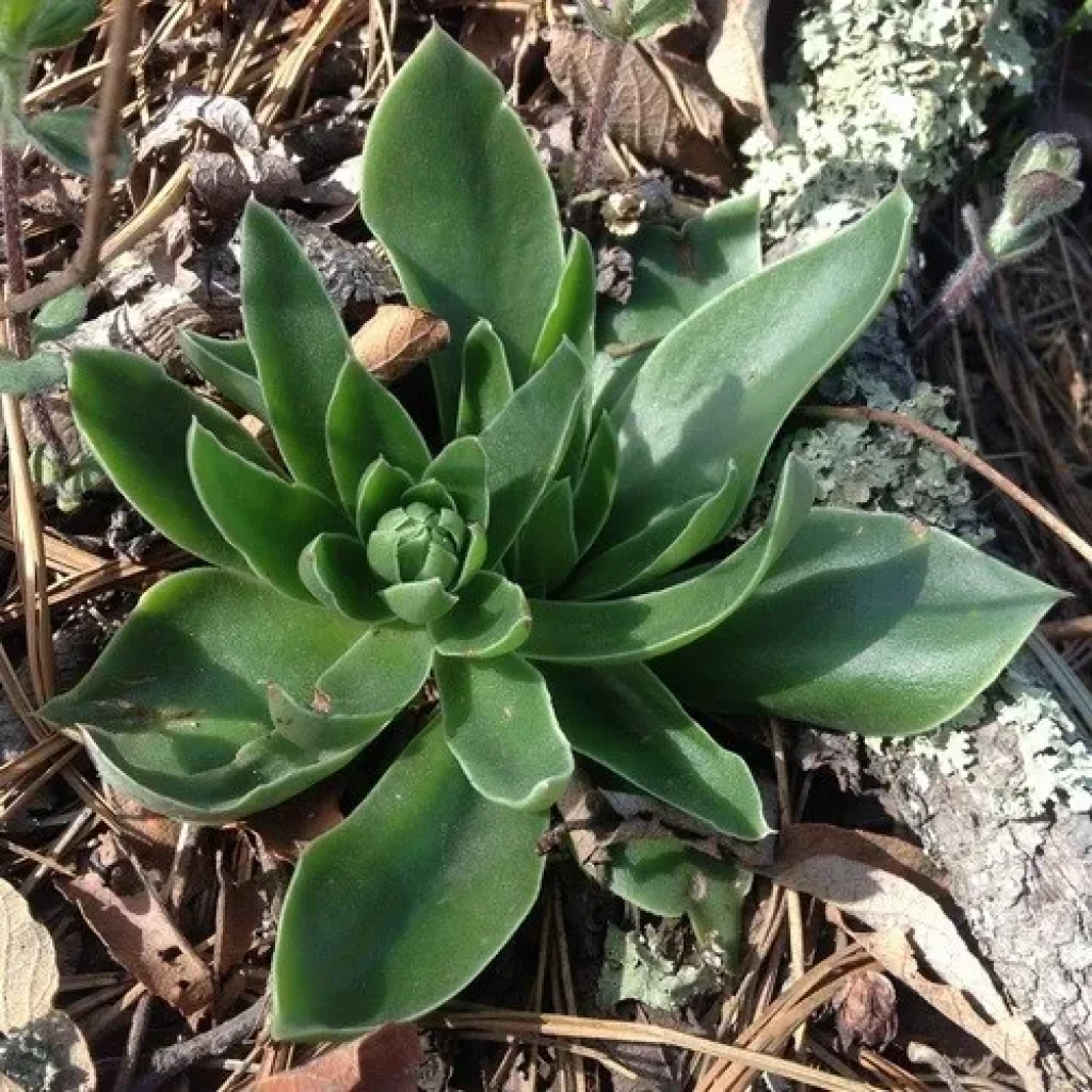Echeveria mucronata, Crassulaceae familyasına ait, belirgin sivri yaprak uçlarıyla tanınan doğal bir Echeveria türüdür. “Mucronata” ismi, yaprakların ucundaki keskin ve küçük dikenimsi çıkıntıya (mukron) atıf yapar. Doğal yayılışı Meksika’dır ve genellikle kayalık, eğimli ve iyi drene olan alanlarda gelişim gösterir. Bitki çoğunlukla gövdesiz ya da çok kısa gövdeli görünür. Doğal ortamında tekli rozet halinde bulunabilir; zamanla yan sürgünler oluşturarak küçük kümeler meydana getirebilir.