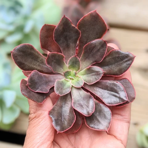 - Echeveria 'Painted Frills' tür adını yaprak kenarlarında oluşan belirgin kıvrımlar ve yoğun renk kontrastından alır.