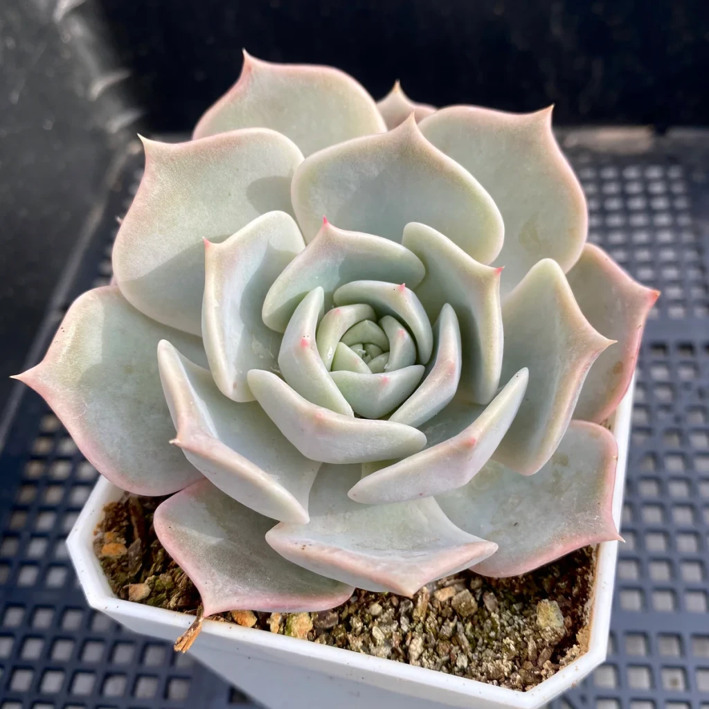 Echeveria 'Paloma', Crassulaceae familyasına ait, açık pastel tonları ve simetrik rozet formuyla öne çıkan hibrit bir Echeveria kültivarıdır. Bitki, kompakt ve düzenli yaprak dizilimi sayesinde dengeli bir siluet oluşturur. Gövde kısa kalır ve genellikle yaprakların altında gizlenir. Uygun yetiştirme koşullarında dipten yavru vererek zamanla kümelenebilir. Formunu koruma eğilimi yüksek olan kültivarlardan biridir.