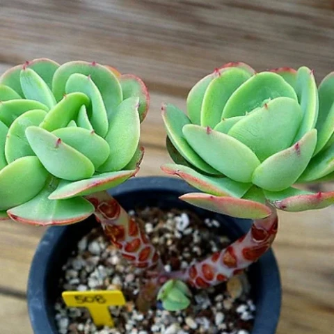 Çiçeklenme döneminde rozet merkezinden ince bir çiçek sapı yükselir. Sap üzerinde çan formunda küçük çiçekler gelişir. Çiçekler genellikle turuncu ve pembe tonlarındadır. Çiçeklenme ışık ve genel bakım koşullarına bağlı olarak değişkenlik gösterebilir. Çoğaltma işlemi dipten oluşan yan rozetlerin ayrılması veya yaprak çeliği yöntemiyle yapılabilir. Yan rozetler yeterli büyüklüğe ulaştığında dikkatlice ayrılarak geçirgen karışıma dikilir. Yaprakla çoğaltmada kesik yüzeyin kuruması beklenmeli ve köklendirme sürecinde aşırı nemden kaçınılmalıdır. Gübreleme yalnızca ilkbaharda ve düşük dozda uygulanmalıdır. Sukulentlere uygun dengeli içerikli besinler tercih edilmelidir. Aşırı azotlu uygulamalar yaprakların yumuşamasına ve form kaybına neden olabilir. Kontrollü besleme, kompakt rozet yapısının korunmasına katkı sağlar.