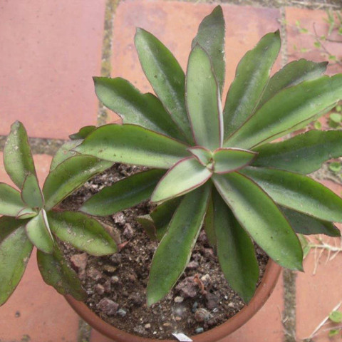 Echeveria penduliflora, Crassulaceae familyasına ait, dar ve uzamış yaprak yapısıyla klasik Echeveria rozetlerinden daha farklı bir görünüm sergileyen bir türdür. Bu tür, doğal yayılış alanlarında kayalık ve iyi drenajlı bölgelerde gelişim gösterir. Rozet formu belirgindir ancak yapraklar daha ince ve uzun olduğu için genel görünüm daha açık ve yıldız şeklindedir. Uygun koşullarda rozet çapı genellikle 10–18 cm arasında değişir. Yapraklar dar, mızrak formunda ve uç kısmı belirgin sivridir. Doku etli olmakla birlikte, bazı kalın yapraklı Echeveria türlerine kıyasla daha ince yapı gösterebilir. Yaprak yüzeyi genellikle mat ve hafif mumsu kaplıdır; bu kaplama su kaybını azaltarak kuraklığa adaptasyonu destekler. Renk çoğunlukla yeşil ile koyu yeşil arasında değişir. Yüksek ışıkta yaprak kenarlarında kırmızımsı veya bordo tonlu hat oluşabilir. Işık yetersizliğinde rozet gevşer ve yapraklar daha açık renge dönebilir.