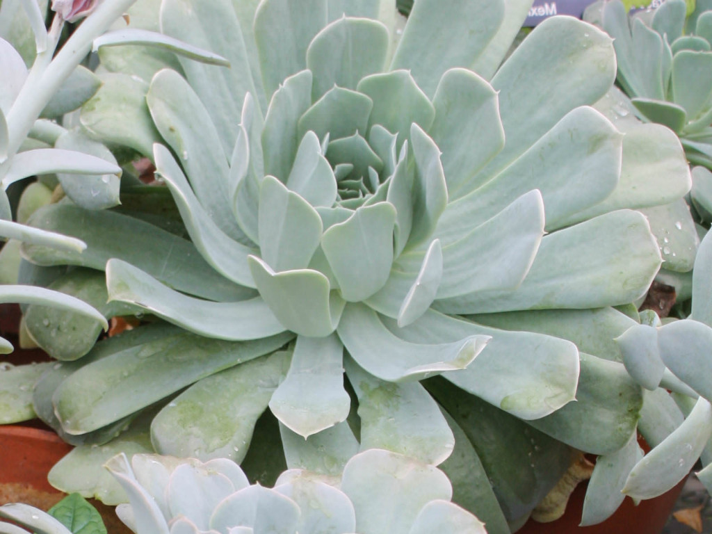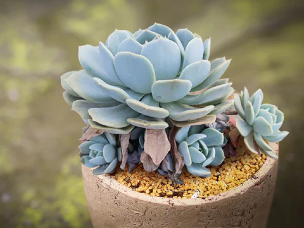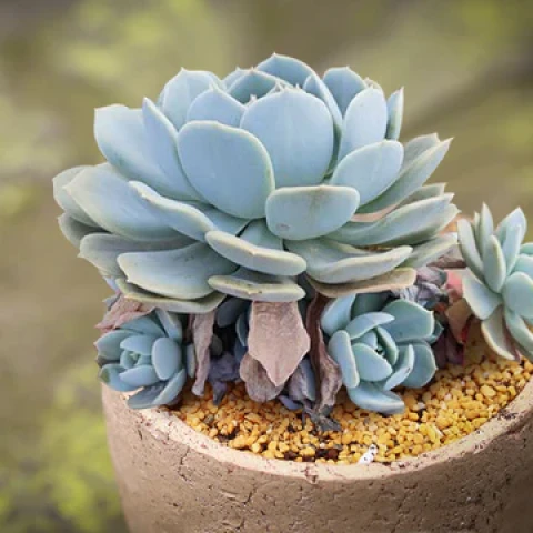 Echeveria runyonii, Meksika kökenli doğal bir türdür ve özellikle mavi-gri tonlu yapraklarıyla tanınır. En bilinen varyetesi “Topsy Turvy” olsa da klasik formu daha geniş, düz ve etli yapraklara sahip açık bir rozet oluşturur. Yaprak yüzeyi hafif mat ve pudramsıdır; bu doğal kaplama bitkinin su kaybını azaltmasına yardımcı olur. Sağlıklı bir Echeveria runyonii, merkezden dışa doğru dengeli bir spiral oluşturur ve yapraklar sık fakat aşırı kompakt olmayan bir düzen gösterir. Işık koşullarına bağlı olarak rengi açık gri-maviden hafif yeşilimsi tonlara kayabilir. Yeterli aydınlıkta yapraklar kalınlaşır ve rozet daha sıkı kalır; yetersiz ışıkta ise aralar açılır ve bitki uzamaya başlar. Bu nedenle güçlü ama kontrollü ışık sağlamak bakımın en kritik unsurudur. İç mekânda güney veya batı cepheli pencere önü idealdir. Açık alanda sabah ve akşam güneşi gelişimi destekler, ancak ani ve sert öğle güneşi yaprak yüzeyinde yanıklara yol açabileceğinden kademeli geçiş yapılmalıdır.