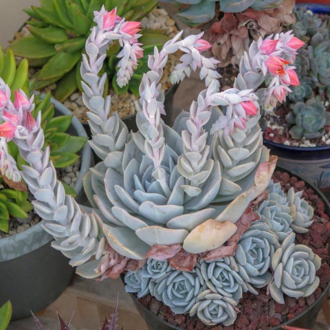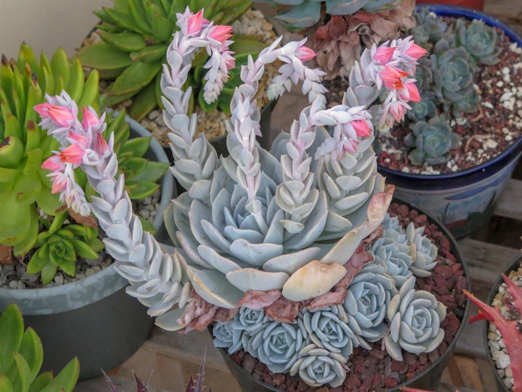 Toprak seçimi bu tür için hayati öneme sahiptir. Hızlı drenaj sağlayan, mineral ağırlıklı ve hava geçirgen bir karışım tercih edilmelidir. Pomza, perlit veya iri taneli malzemeler içeren karışımlar kök sağlığını korur. Aşırı su tutan torf ağırlıklı karışımlar uzun vadede kök çürümesine zemin hazırlar. Saksı tabanında drenaj deliği bulunmalıdır ve toprak saksı kullanımı nemin daha dengeli dağılmasına yardımcı olabilir. Sulama yalnızca toprak tamamen kuruduktan sonra yapılmalıdır. Yüzeyin kuru görünmesi yeterli değildir; alt katmanların da kuru olduğundan emin olunmalıdır. Echeveria runyonii yapraklarında su depolama kapasitesi yüksek olduğu için sık sulama gerektirmez. Kış döneminde büyüme yavaşladığından sulama aralığı uzatılmalıdır. Soğuk ve sürekli nemli ortam kök çürümesi riskini artırır. Sulama sırasında rozet merkezine su birikmemesine dikkat edilmelidir. Bu tür ılıman koşulları sever ve iyi hava sirkülasyonuna ihtiyaç duyar. Havasız ve nemli ortamlar mantar problemlerini tetikleyebilir. Don riskine karşı korunmalıdır ancak kısa süreli hafif serinliğe dayanabilir. İlkbahar sonu ve yaz başında uzun çiçek sapları üzerinde turuncu-pembe tonlarda çan formunda çiçekler açar. Çiçek sapları rozetin üzerine yükselerek görsel kontrast oluşturur. Sağlıklı ve yeterli ışık alan bitkiler daha güçlü çiçeklenme gösterir. Çoğaltma yaprak çeliği veya yan sürgün ayırma ile yapılabilir. Sağlıklı bir yaprak dipten ayrılmalı ve kesik yüzey birkaç gün kurutulduktan sonra geçirgen karışıma yerleştirilmelidir. Küme oluşturan örneklerde rozet ayırma daha hızlı sonuç verir.