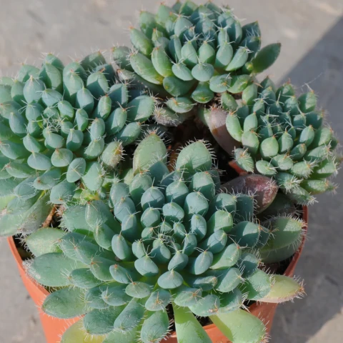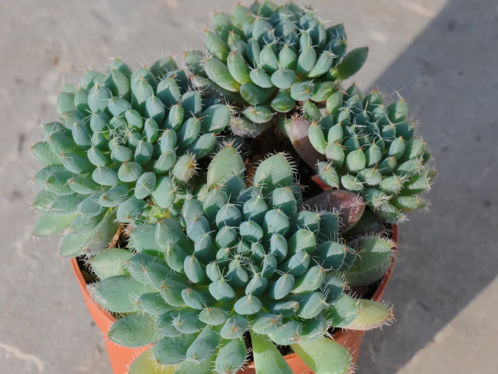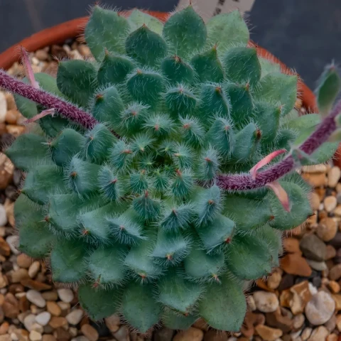 Echeveria setosa var. deminuta, Crassulaceae familyasına ait, yoğun tüylü yaprak yapısıyla tanınan Echeveria setosa türünün bir varyetesidir. Bitki genellikle kümeler halinde gelişir ve kısa sürede çoklu rozetler oluşturabilir. Gövde kısa kalır ve çoğunlukla yaprak yoğunluğu içinde gizlenir. Koloni formunda gelişim göstermesi, bu varyeteyi koleksiyon sukulentleri arasında öne çıkarır.
