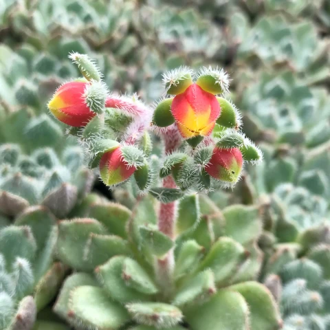 Echeveria setosa var. deminuta çiçeklenme döneminde ince ve dik bir çiçek sapı geliştirir. Çiçekler genellikle küçük, çan formunda ve salkım şeklinde dizilir. Turuncu ve kırmızı tonlu çiçekler görülebilir. Çiçeklenme, ışık seviyesi ve bitkinin genel sağlık durumuyla doğrudan ilişkilidir. Sağlıklı bireylerde düzenli çiçek gelişimi gözlemlenebilir.
