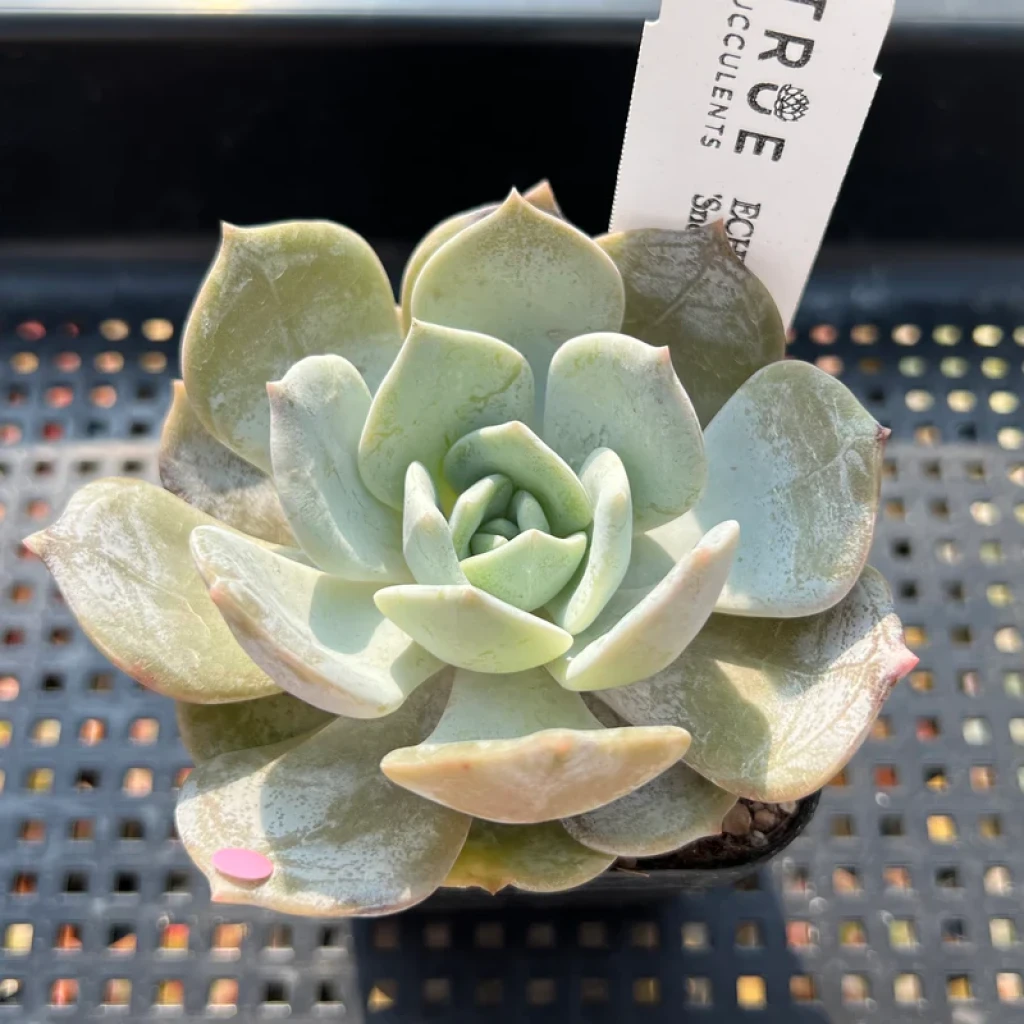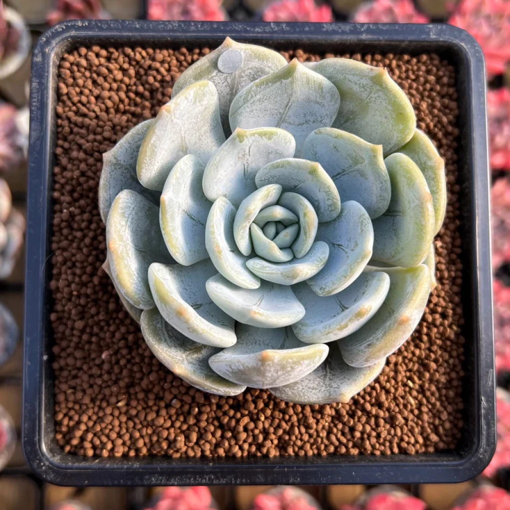 Echeveria ‘Snow Shower’, Crassulaceae familyasına ait, açık tonlu yaprakları üzerinde benekli ve pudramsı görünüm oluşturan yüzey yapısıyla dikkat çeken bir sukulent kültivarıdır. Echeveria laui ve Echeveria 'Lola' çeşitlerinin çaprazlanması sonucu elde edilen bir türdür. Kompakt ve simetrik rozet formu, bu kültivarı koleksiyon bitkileri arasında öne çıkarır. Genellikle tek merkezli rozet halinde gelişir; uygun bakım koşullarında zamanla yan sürgün verebilir. Gövde kısa ve kalındır, yapraklar gövdeyi sıkı şekilde örter. Yaş ilerledikçe alt yaprakların kuruyarak dökülmesiyle gövde kısmen görünür hale gelebilir.