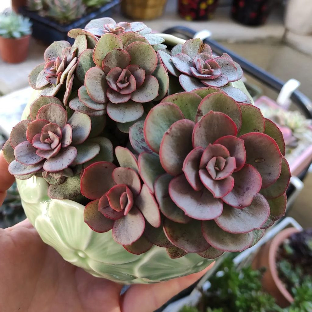 Echeveria 'Suyon', Crassulaceae familyasına ait rozet formlu hibrit bir sukulent kültivarıdır. Oluşturulduğu aile bilinmemektedir. Echeveria cinsinin karakteristik simetrik dizilimini taşırken, kompakt yapısı ve belirgin yaprak dokusuyla öne çıkar. Hibrit kökenli olduğu için ebeveyn türlerin morfolojik özelliklerini birlikte gösterebilir. Gövde genellikle kısa ve rozet altında gizlidir. Uygun koşullarda zamanla dip sürgünleri oluşturarak kümelenme eğilimi gösterebilir. Böylece, gövdesi oluşarak, mini bir ağaç formu alabilir.