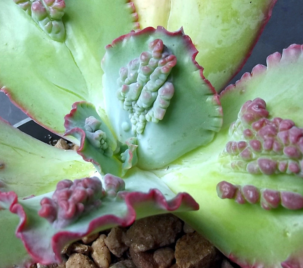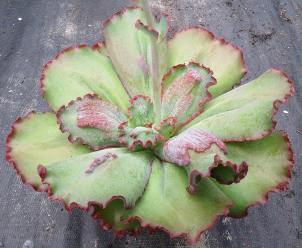 Saksı seçiminde drenaj deliği bulunması önemlidir. Fazla suyun hızla uzaklaştırılması kök sağlığını destekler. Toprak saksı kullanımı, karışımın daha hızlı kurumasına katkı sağlayabilir. Saksı boyutu kök sistemine uygun ölçüde olmalı, gereğinden büyük saksılardan kaçınılmalıdır. Çiçeklenme döneminde rozet merkezinden ince bir çiçek sapı gelişir. Çiçekler kırmızı-pembe ya da turuncu tonlardadır ve ilkbahar sonu ile yaz başında görülebilir. Çoğaltma işlemi dipten oluşan yavruların ayrılması veya yaprak çeliği yöntemiyle yapılabilir. Yaprak çeliğinde, sağlıklı ve tam ayrılmış bir yaprak kullanılmalı, kesik yüzey birkaç gün kurutulduktan sonra geçirgen karışım üzerine yerleştirilmelidir. Uygun koşullarda kök ve yeni rozet oluşumu gerçekleşir.