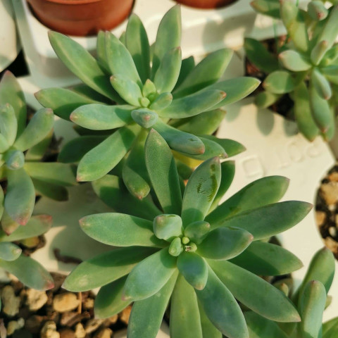 Gübreleme yalnızca ilkbahar döneminde, düşük azotlu ve dengeli bir sukulent gübresiyle, önerilen dozun oldukça altında ve seyrek aralıklarla uygulanmalıdır; aşırı gübreleme yaprakların gevşemesine, renk kaybına ve doku bozulmasına yol açabilir. Üretim, yaprak çeliği, gövde çeliği veya rozet ayırma yöntemleriyle gerçekleştirilebilir; yapraktan üretimde sağlıklı ve olgun yapraklar gövdeden bütün olarak ayrılmalı, kesim yüzeyi birkaç gün kurutulduktan sonra mineral ağırlıklı karışım üzerine yerleştirilmelidir; çelikle üretimde ise kesilen parçanın kallus oluşturması beklenmeli, ardından hafif nemli fakat ıslak olmayan bir ortama dikilmelidir; köklenme sürecinde fazla nemden kaçınılması çürüme riskini azaltır. Çiçeklenme, uygun yetiştirme koşulları sağlandığında ilkbahar sonu veya yaz başında görülebilir; rozetten yükselen ince bir çiçek sapı üzerinde küçük, yıldız formunda ve açık sarıdan krem tonlarına uzanan çiçekler açar; çiçeklenme süreci tamamlandıktan sonra sapın temizlenmesi, bitkinin enerjisinin yeniden vejetatif gelişime yönlendirilmesi açısından uygundur.