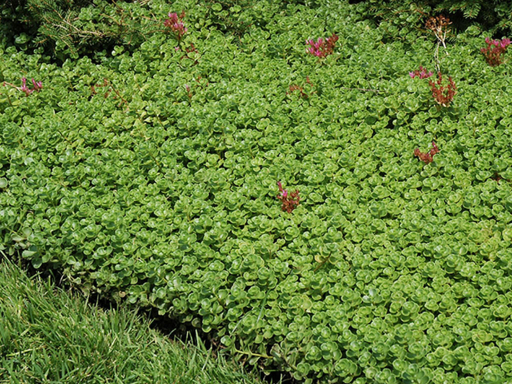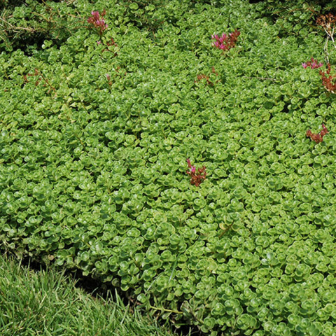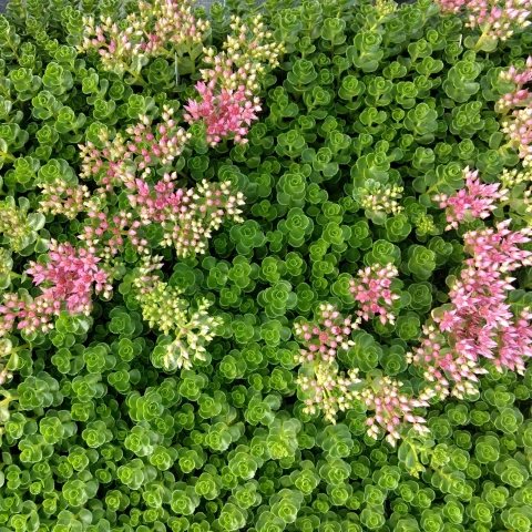 Phedimus spurius ‘John Creech’, Crassulaceae (damkoruğugiller) familyasına ait, çok yıllık, alçak boylu ve düzenli yayılım gösteren bir yer örtücü Phedimus spurius kültivarıdır. Uzun süre Sedum spurium adıyla tanınmış olan bu seçili form, özellikle kompakt gelişimi ve dengeli çiçeklenmesiyle öne çıkar. Bitkinin gövdeleri etli, kısa boğumlu ve yatay yönde sürünücü karakterdedir. Gövdeler toprağa temas ettikleri noktalardan kolaylıkla köklenir; ancak ‘John Creech’, bazı diğer Phedimus spurius kültivarlarına kıyasla daha sıkı ve kontrollü bir yayılım gösterir. Bu özellik, bitkinin düzensiz taşma yapmadan kompakt bir örtü oluşturmasını sağlar. Gövdelerin dikey uzaması sınırlıdır ve bitki genel olarak yere yakın, düzgün bir formda kalır. Yapraklar etli, dolgun ve su depolama kapasitesi yüksek yapıdadır. Yaprak dizilimi çoğunlukla karşılıklıdır. Yaprak formu oval ile yuvarlağa yakın yapıdadır ve uçlar genellikle küt görünür. Yaprak yüzeyi pürüzsüzdür. Büyüme döneminde yaprak rengi orta yeşil tonlarındadır. Yoğun güneş ışığında veya serin hava koşullarında yapraklarda hafif kızılımsı ya da bronz yansımalar oluşabilir; bu renklenme geçicidir ve mevsimsel adaptasyonun bir parçasıdır.