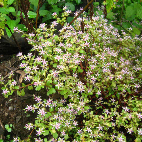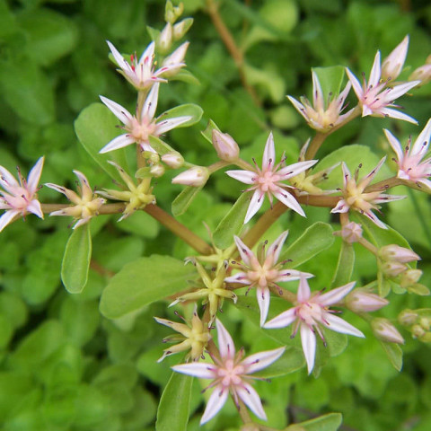 Phedimus stoloniferus, Crassulaceae (damkoruğugiller) familyasına ait, çok yıllık, düşük boylu ve adından da anlaşılacağı üzere stolonlu (sürgünle) büyüme alışkanlığı belirgin bir sukulent türüdür. Phedimus stoloniferus, hem soğuğa dayanıklılığı hem de yatay yönde hızla yayılan yapısı sayesinde açık alan yetiştiriciliğinde güvenilir bir yer örtücü olarak değerlendirilir. Özellikle doğal görünümlü bahçeler, kaya bahçeleri ve taş aralarında dengeli bir bitki dokusu oluşturur. Bitkinin gövdeleri ince, etli ve yatay yönde uzanarak çoğalır. Toprağa temas ettikleri noktalardan kolaylıkla köklenir ve kısa sürede yeni bitki noktaları meydana getirir. Bu yapı, Phedimus stoloniferus’un diğer birçok Phedimus türüne kıyasla daha hızlı ve düzenli yayılmasını sağlar. Gövdeler genellikle yere yakın gelişir ve dikey büyüme sınırlıdır. Yapraklar etli, dolgun ve su tutma kapasitesi yüksek yapıdadır. Yaprak dizilimi çoğunlukla karşılıklı ya da kısa aralıklı almaşık formda görülür. Yaprak formu yuvarlağa yakın oval yapıdadır ve uç kısımlar belirgin şekilde küt görünür. Yaprak yüzeyi pürüzsüzdür. Aktif büyüme döneminde yaprak rengi açık yeşil ile orta yeşil tonları arasındadır. Serin hava koşullarında veya yoğun güneş altında yapraklarda sarımsı ya da hafif bronz renklenmeler oluşabilir. Bu değişim, bitkinin stres tepkisi değil, doğal adaptasyon sürecinin bir parçasıdır. Phedimus stoloniferus’un çiçekleri küçük, yıldız formunda ve sade görünümlüdür. Çiçeklenme dönemi genellikle ilkbahar sonu ile yaz başı arasında gerçekleşir. Çiçekler pembe tonlarda açar. Çiçekler gövde uçlarında gevşek salkımlar hâlinde toplanır. Çiçeklenme, yoğun olmaktan ziyade dengeli ve düzenlidir. Yeşil yaprak dokusu üzerinde çiçekler yumuşak bir kontrast oluşturur.