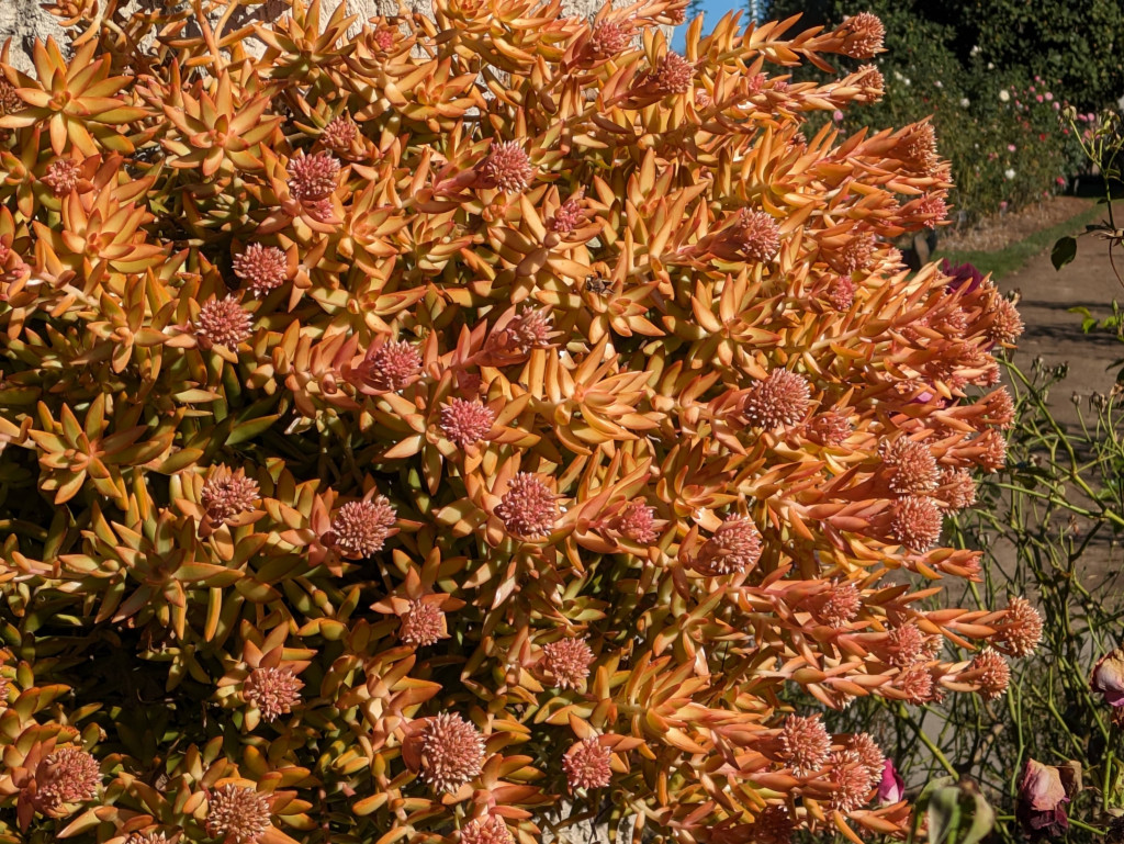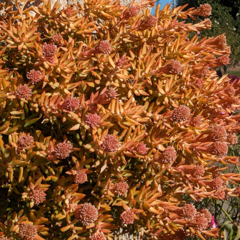 Sedum adolphi ‘Firestorm’, Crassulaceae familyasına ait, çok yıllık bir sukulenttir. Bu varyete, özellikle güçlü ışık altında sarıdan turuncuya ve kırmızı tonlara dönen yaprakları sayesinde koleksiyonlarda ve peyzaj düzenlemelerinde dikkat çeker. Doğal olarak Meksika kökenli olan Sedum adolphi türünden seleksiyon yoluyla elde edilmiş olan ‘Firestorm’, kompakt gelişimi ve yoğun sürgünlenme eğilimi ile tanınır. Bitki, kısa gövdeler üzerinde rozet benzeri dizilim gösteren etli yapraklara sahiptir. Yapraklar oval-uçlu, pürüzsüz yüzeyli ve su depolama kapasitesi yüksek yapıdadır. Genç sürgünlerde renkler daha açık yeşil ve sarı tonlarında başlarken, olgunlaşma ve ışık şiddetinin artmasıyla birlikte kırmızımsı kenarlar belirginleşir. Bu renklenme bir hastalık belirtisi değil, aksine bitkinin sağlıklı ışık stresine verdiği doğal bir tepkidir. Çiçeklenme genellikle ilkbahar sonu ve yaz başında görülür. Sedum adolphi ‘Firestorm’, ince saplar üzerinde açan, yıldız formunda, beyaz - açık sarı tonlarda küçük çiçekler oluşturur.