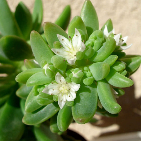 Sedum ‘Alice Evans’, Crassulaceae familyasına ait, çok yıllık ve etli yapılı bir sukulent kültivarıdır ve kompakt rozetler oluşturarak zamanla yarı sarkıcı bir gelişim gösterir. Yaprakları küçük, etli, oval–yuvarlak formda ve uçları hafif sivridir; yüzeyleri pürüzsüzdür ve su depolama özelliği sayesinde kuraklığa dayanıklıdır. Doğru ışık koşullarında bitki açık yeşil tonlarını korur, yoğun güneş altında uç kısımlarda hafif sarımsı tonlar görülebilir. Sedum ‘Alice Evans’ için bol aydınlık bir konum idealdir; doğrudan güneş ışığına kademeli olarak alıştırılmalıdır, ani ve uzun süreli öğle güneşi yaprak yanıklarına yol açabilir. Toprak seçimi bu tür için kritik öneme sahiptir; suyu hızlı süzen, mineral ağırlıklı bir kaktüs–sukulent karışımı tercih edilmeli, saksı mutlaka drenaj delikli olmalıdır. Sulama yalnızca toprak tamamen kuruduğunda yapılmalı, özellikle serin dönemlerde sık sulamadan kaçınılmalıdır; fazla nem kök çürümesine neden olabilir. Saksı tercihi olarak toprak saksı önerilir, bu sayede fazla nem daha hızlı uzaklaştırılır ve kök sağlığı korunur. Bitki büyüdükçe gövdeler uzar ve zamanla hafif odunsu bir yapı kazanabilir; bu durum tür için doğaldır. İlkbahar ve yaz aylarında beyaz, yıldız formunda çiçekler açar; çiçeklenme sonrası ana rozet yaşamını sürdürür. Üretimi oldukça kolaydır ve gövde ya da yaprak çelikleriyle çoğaltılabilir; kesilen parçaların dikim öncesinde birkaç gün kurutulması sağlıklı köklenme için önemlidir. Gübreleme ihtiyacı düşüktür ve yalnızca ilkbahar döneminde, düşük azotlu seyreltilmiş bir sukulent gübresiyle desteklenmesi yeterlidir.