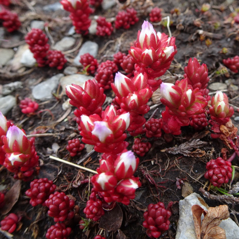 Sedum candollei, doğada genellikle taşlık, iyi drene olan, besin değeri düşük topraklarda yaşar. Bu nedenle Sedum candollei, bakımda “fazlası zarar” ilkesinin en net hissedildiği türlerden biridir. Doğru koşullar sağlandığında oldukça stabil gelişir ve formunu uzun süre korur. Sedum candollei’nin yaprakları etli, yuvarlağa yakın ve pürüzsüz yüzeylidir. Yapraklar gövde etrafında dengeli şekilde dizilir ve bitkiye dolgun bir görünüm kazandırır. Yeşil tonlarındaki yaprakları aldığı ışığa bağlı olarak kızarır ve rengi bordoya döner. Yapraklar su depolama görevini iyi yerine getirir ancak bu durum bitkinin fazla sulamaya dayanıklı olduğu anlamına gelmez. Aşırı sulama yapıldığında yapraklar önce şişer, ardından yumuşayarak gövdeden kendiliğinden ayrılabilir. Bu durum genellikle kök bölgesinde başlayan nem fazlasının ilk belirtisidir.