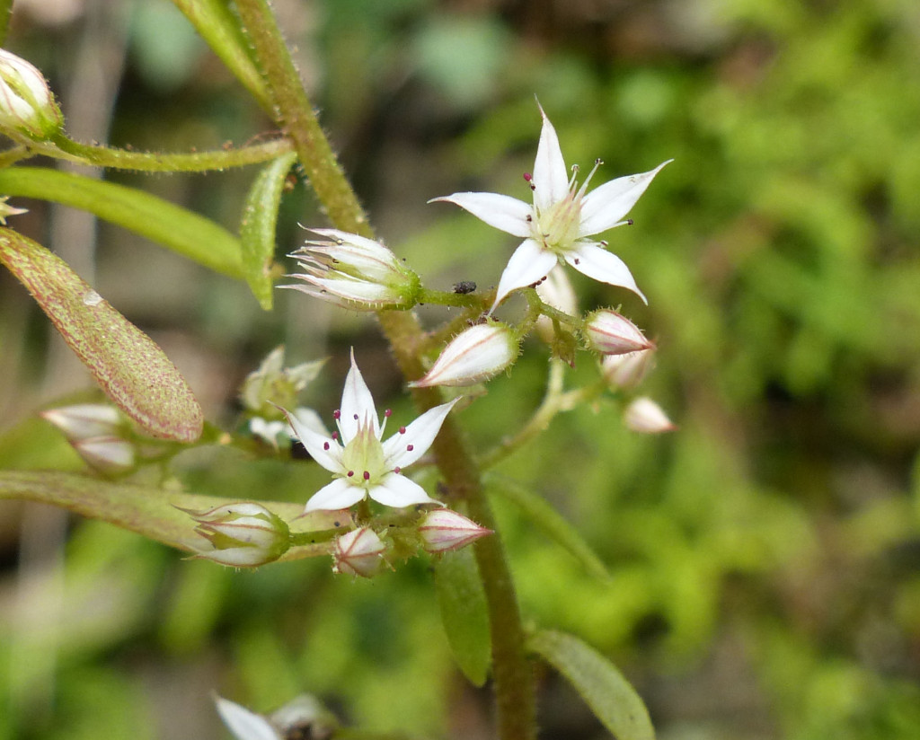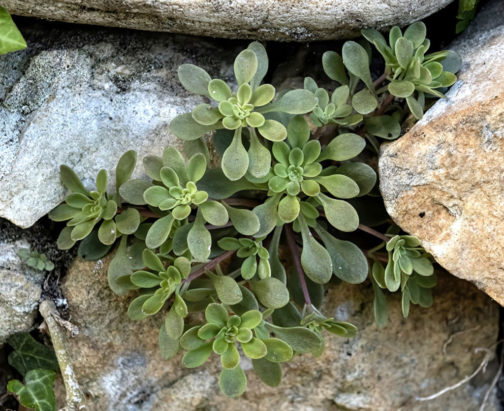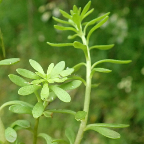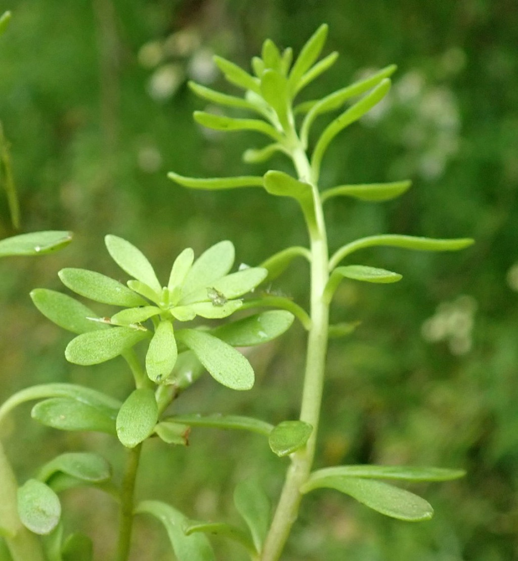 Sedum cepaea, sedum türleri arasında ince gövdeli yapısı, katmanlı yaprak dizilimi ve zarif görünümü ile diğer türlerden kolayca ayrılan bir sukulenttir. Doğal yayılım alanı Avrupa’nın güney ve orta kesimleridir; özellikle orman kenarları, yarı gölgeli yamaçlar, taşlık ama organik maddece zengin alanlar bu türün doğada sıkça görüldüğü ortamlardır. Bu yönüyle Sedum cepaea, klasik “tam güneş sedumu” algısından biraz ayrılır ve daha dengeli ışık koşullarında çok daha sağlıklı gelişir. Sedum cepaea’nın yaprakları ince, yassı ve oval formdadır. Yapraklar gövde üzerinde katmanlar halinde dizilir ve bitkiye hafif, zarif bir siluet kazandırır. Alt yapraklar genellikle daha geniştir, üst kısımlara doğru yaprak boyutu küçülür. Renkleri açık yeşilden mavi-yeşile kadar değişebilir. Yeterli ama yakıcı olmayan ışıkta yaprak rengi daha canlı ve sağlıklı görünür. Aşırı güneş altında ise yapraklar soluklaşabilir ve ince yapıları nedeniyle kolayca stres belirtileri gösterebilir.