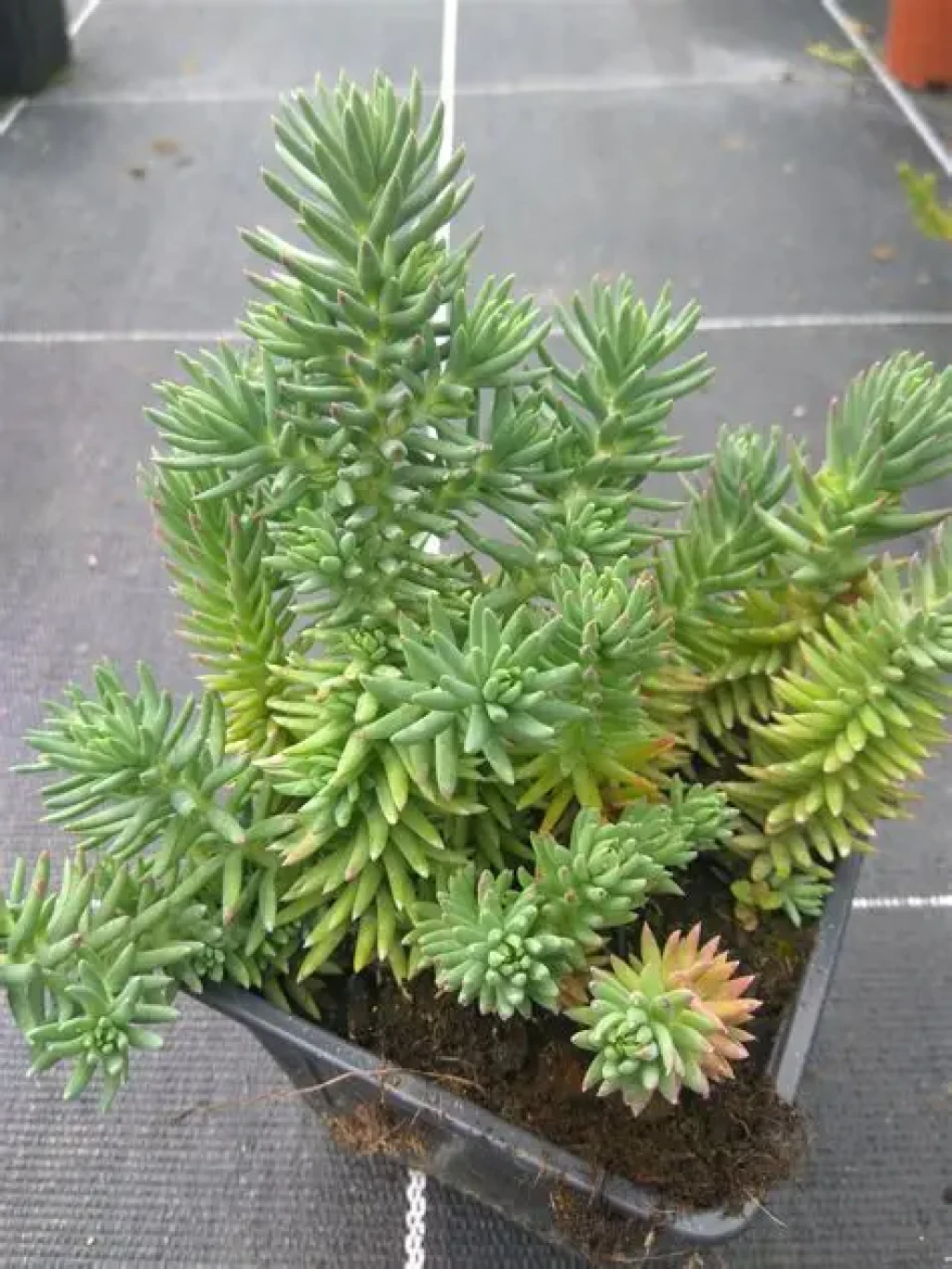 Sedum forsterianum, sedum türleri içinde hem dayanıklılığı hem de yıl boyu dekoratif kalan yaprak dokusuyla öne çıkan, bakımı kolay fakat doğru koşullarda çok daha kompakt ve sağlıklı gelişen bir sukulenttir. "Petrosedum forsterianum" bitkinin yeni ismidir. Doğal yaşam alanlarında genellikle taşlık yamaçlar, kayalık yüzeyler ve ince toprak tabakaları üzerinde bulunur. Bu habitat, bitkinin suyu hızla tahliye eden zeminlere uyum sağlamasına neden olmuştur. Gövdeleri yüzeye yakın şekilde ilerler ve zamanla yayılarak bulunduğu alanı kaplayan düzenli bir doku oluşturur. Saksıda yetiştirildiğinde yarı sarkıcı bir form alabilir; bahçede veya geniş kaplarda ise zemin örtücü olabilir. Yapraklar gövde üzerinde sık dizilimlidir ve bu durum bitkiye dolgun bir görünüm kazandırır. Renkleri genellikle canlı yeşil tonlarındadır; yoğun güneş ışığı ve serin hava koşullarında yaprak uçlarında sarımsı ya da hafif kızılımsı renklenmeler görülebilir. Bu renk değişimleri bitkinin yeterli ışık aldığını ve sağlıklı geliştiğini gösterir. Sedum forsterianum için kaktüs–sukulent karışımı, iyi drene olan bir toprak kullanılması oldukça önemlidir. Toprağın uzun süre nemli kalması köklerin hava almasını engeller ve kısa sürede kök çürümesine yol açabilir. Sulama mutlaka toprak tamamen kuruduğunda yapılmalı ve sulama sırasında suyun saksının tamamına eşit şekilde dağılması sağlanmalıdır. Sulamadan önce toprağın alt kısımları kontrol edilmeli; dip kısımlar hâlâ nemliyse sulama ertelenmelidir. Sulama sırasında yapraklara su değmemesine özen gösterilmelidir. Özellikle sıcak yaz günlerinde yaprak üzerinde kalan su damlaları güneş ışığıyla birleşerek yanıklara neden olabilir. Saksı seçiminde drenaj delikleri bulunan toprak saksı tercih edilmesi toprağın daha hızlı kurumasını sağlayarak kök sağlığını destekler; ancak sulama dengesi doğru kurulduğu sürece farklı saksı türlerinde de sağlıklı şekilde yetiştirilebilir. Yayılıcı formu nedeniyle derinliği fazla olmayan, geniş ağızlı saksılar Sedum forsterianum için daha uygundur. Toprak ve saksı değişimi bitki ilk alındığında yapılabilir; ilerleyen dönemlerde yapılacak değişimler için ilkbahar ayları tercih edilmelidir.