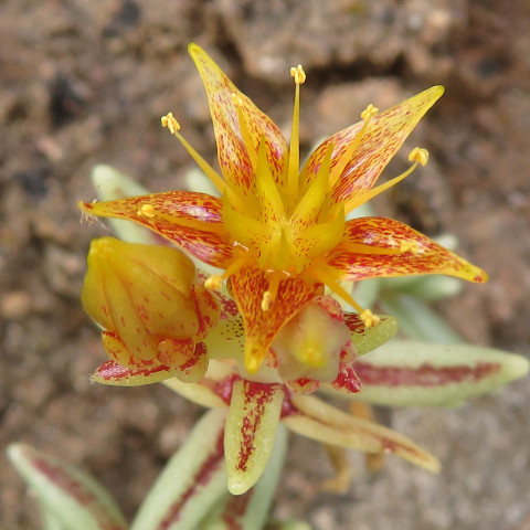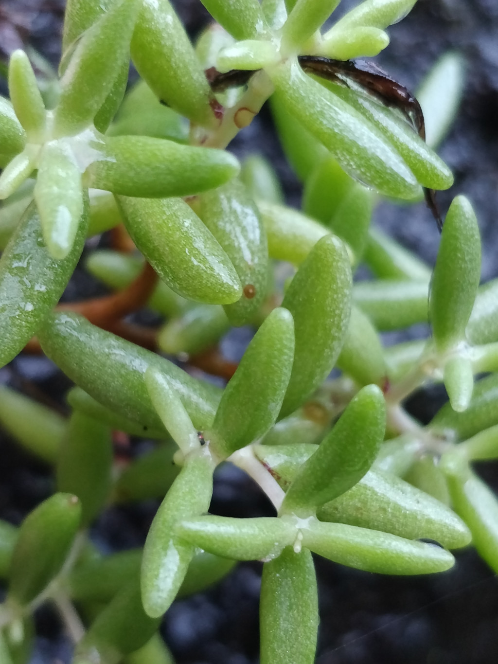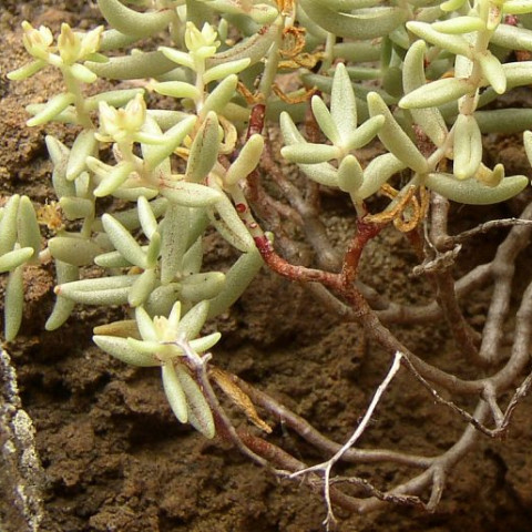 Sedum fusiforme, sedum türleri arasında gövde ve yaprak formu itibarıyla daha ince, uzamaya yatkın yapısıyla dikkat çeken; doğru ışık ve sulama dengesi sağlandığında son derece düzenli ve zarif bir görünüm kazanan bir sukulenttir. Doğal yaşam alanlarında genellikle taşlık yamaçlar, kayalık yüzeyler ve suyun hızla süzüldüğü fakir zeminlerde gelişir. Bu nedenle kök yapısı, uzun süre nemli kalan topraklara karşı hassastır. Gövdeleri yüzeye yakın ilerleyerek yayılır; uygun koşullarda zamanla bulunduğu alanı kaplayan bir doku oluşturur. Saksıda yetiştirildiğinde yarı sarkıcı bir form alabilir, geniş kaplarda ise zemin örtücü olarak oldukça estetik durur. Sedum fusiforme’nin yaprakları ince, silindirik ile oval arası bir forma sahiptir ve uçlara doğru hafif daralma gösterir. Yapraklar etli ancak narin yapıdadır ve gövde üzerinde sık dizilimlidir. Renkleri çoğunlukla açık yeşil tonlarındadır.
