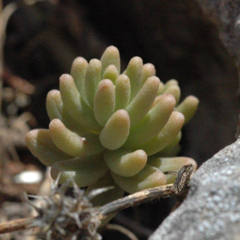 Sedum gypsicola, yaprakları küçük–orta boyutlu, etli ve ovalden yuvarlağa yakın yapıdadır. Yaprakların sert ve tok durması, köklerin doğru çalıştığını gösterir. Yaprak renkleri yeşil tonlarıdır, fakat ışığa veya soğuğa maruz kaldığında yaprakları kızıla döner. Özellikle, yaz sıcaklarında, yapraklarının tamamını kırmızı renkte görmek mümkündür.
