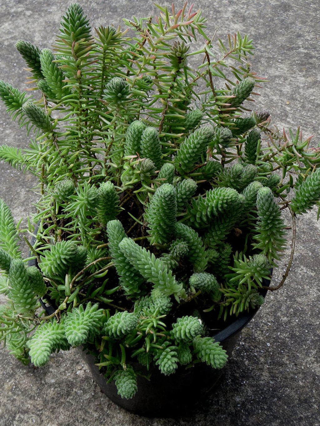 Saksı seçiminde drenaj deliklerinin bulunması zorunludur. Altı delikli saksılar fazla suyun hızla tahliye edilmesini sağlar. Sedum jurgensenii yüzeysel kök yapısına sahiptir; bu nedenle çok derin saksılara ihtiyaç duymaz. Derinliği sınırlı, kök yapısına uygun saksılar tercih edilmelidir. Boyasız toprak saksılar, toprağın daha hızlı kurumasına yardımcı olabilir ancak doğru drenaj sağlandığı sürece farklı saksı türleri de kullanılabilir. Toprak ve saksı değişimi bitki ilk alındığında yapılabilir; sonraki değişimler için mutlaka ilkbahar ayları beklenmelidir. Sedum jurgensenii, kış aylarında dinlenme dönemine girer. Bu dönemde gelişim hızı belirgin şekilde yavaşlar. Kasım ve mart ayları arasında sulama sıklığı ciddi şekilde azaltılmalı, bitki serin fakat aydınlık bir ortamda tutulmalıdır. Isıtıcı kaynaklardan uzak, hava sirkülasyonu olan bir konum tercih edilmelidir. Kış dinlenme dönemini sağlıklı geçiren bitkiler, bahar aylarında daha dengeli bir gelişim sergiler.