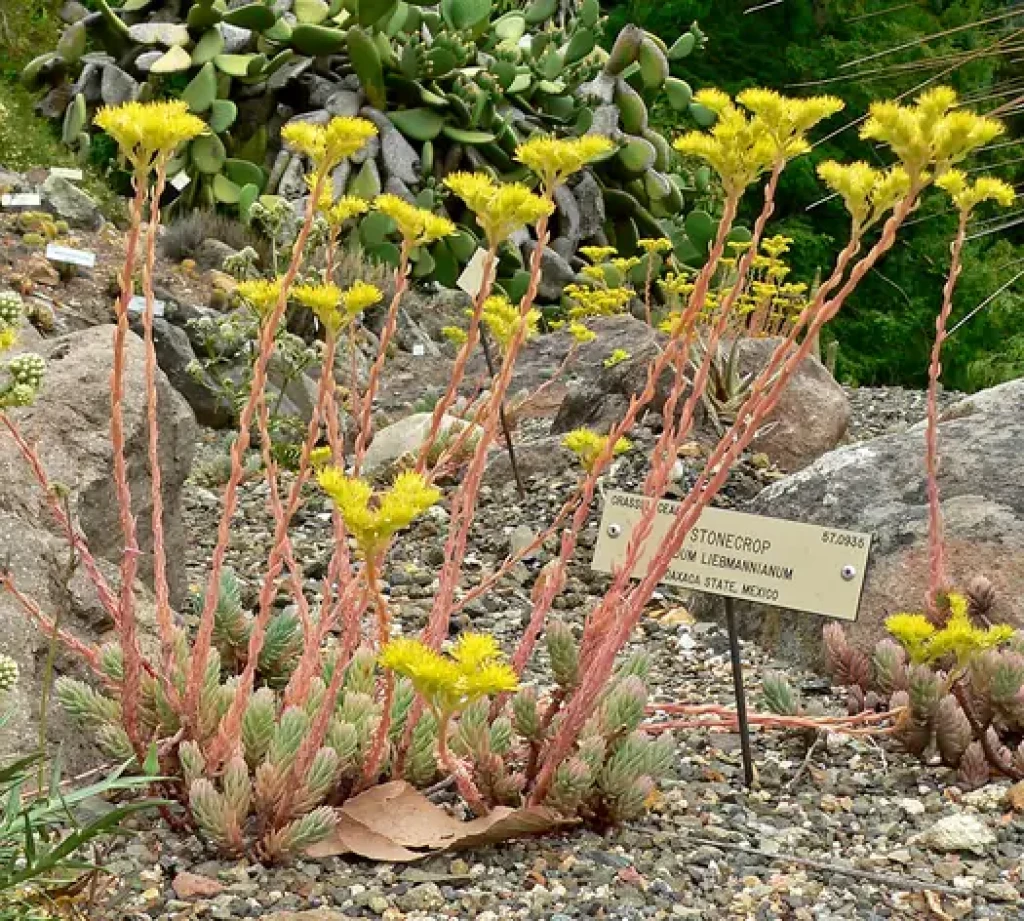 Sedum liebmannianum, Crassulaceae (damkoruğugiller) familyasına ait, sık dokulu yapısı ve dik gelişen sürgünleriyle tanınan bir sedum türüdür. Doğal yaşam alanlarında çoğunlukla kayalık yamaçlarda, taşlık ve mineral ağırlıklı zeminlerde gelişim gösterir. Bu ortamlar, suyun hızla süzüldüğü ve toprağın uzun süre nem tutmadığı alanlardır. Sedum liebmannianum da bu koşullara uyum sağlayarak kuraklığa dayanıklı, düşük bakım ihtiyacına sahip bir yapı kazanmıştır.