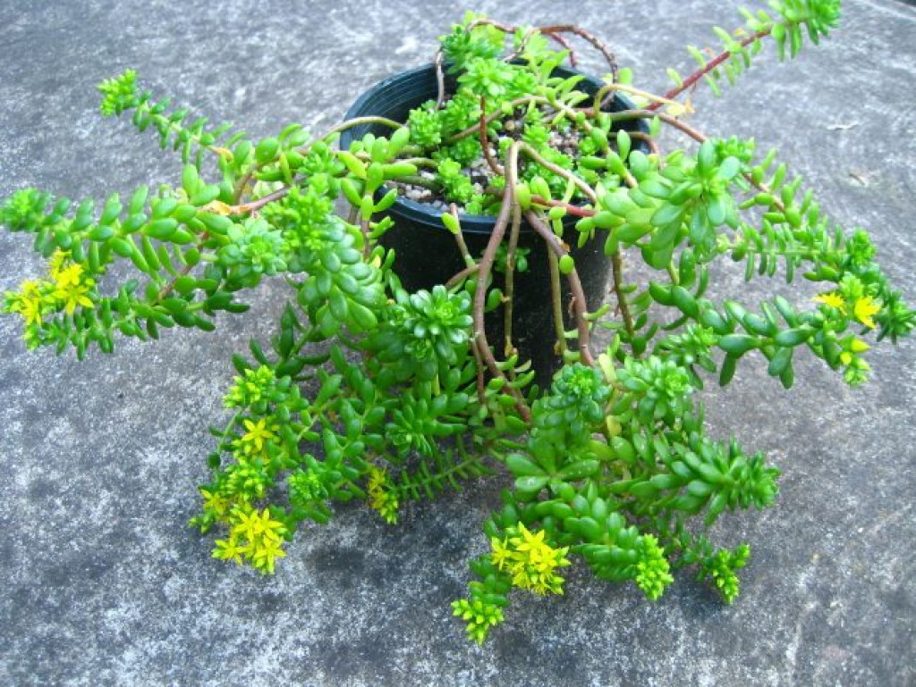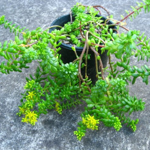 Saksı seçiminde drenaj delikleri bulunan saksılar tercih edilmelidir. Boyasız toprak saksılar, toprağın daha hızlı kurumasını desteklediği için avantaj sağlar; ancak bu bir zorunluluk değildir. Plastik veya farklı materyallerden yapılmış saksılar da uygun drenaj sağlandığında kullanılabilir. Sedum luteoviride yayılan bir tür olduğu için derinliği fazla olmayan, ağız kısmı geniş saksılar daha uygundur. Toprak ve saksı değişimi bitki ilk alındığında yapılabilir. Daha sonraki değişimler için bitkinin aktif büyüme döneminin başladığı ilkbahar ayları tercih edilmelidir.