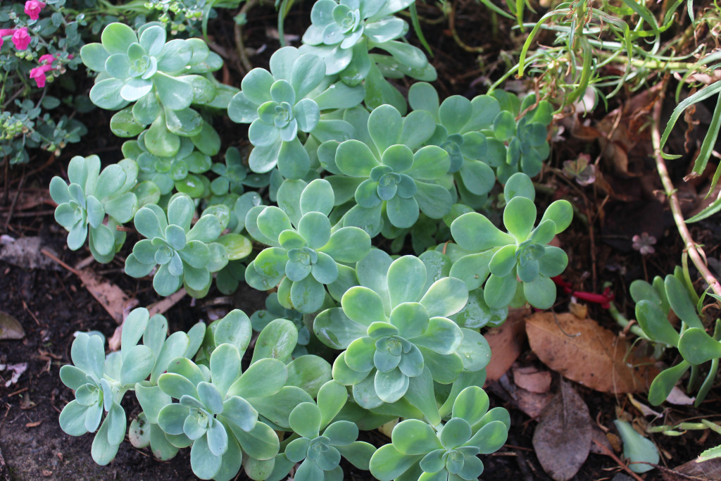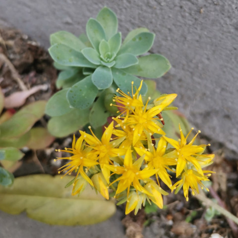 Sedum palmeri, Crassulaceae (damkoruğu) familyasına ait, rozet formu oluşturan ve yarı yayıcı gelişim gösteren bir sedum türüdür. Doğal yaşam alanlarında genellikle kayalık yamaçlar, taş aralıkları ve iyi drene olan açık arazilerde görülür. Bitki, zamanla gövde oluşturan ve bu gövdelerin uçlarında rozetler meydana getiren bir yapı sergiler. Uygun koşullarda yan sürgünler oluşturarak kümeler halinde büyür ve geniş alanlara yayılabilir. Bu özelliği sayesinde hem saksı yetiştiriciliğinde hem de bahçe düzenlemelerinde yer örtücü veya bordür bitkisi olarak kullanılabilir. Sedum palmeri’nin yaprakları etli, geniş, oval ile spatula formu arasında değişen bir yapıdadır. Yapraklar rozet şeklinde dizilir ve yüzeyleri pürüzsüzdür. Renkleri genellikle açık yeşil ile sarımsı yeşil tonlarındadır. Yeterli güneş ışığı aldığında yaprak uçlarında veya kenarlarında pembe ile kızılımsı tonlar oluşabilir. Bu renklenme, bitkinin ışık ve sıcaklık koşullarına verdiği doğal bir tepkidir ve sağlıklı gelişimin göstergesi olarak değerlendirilir. Yetersiz ışık koşullarında yapraklar daha soluk renkte kalır ve rozet formu gevşeyebilir.