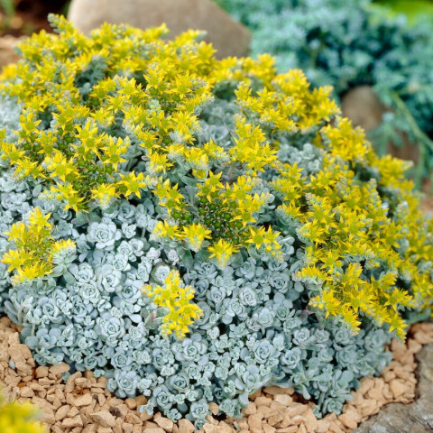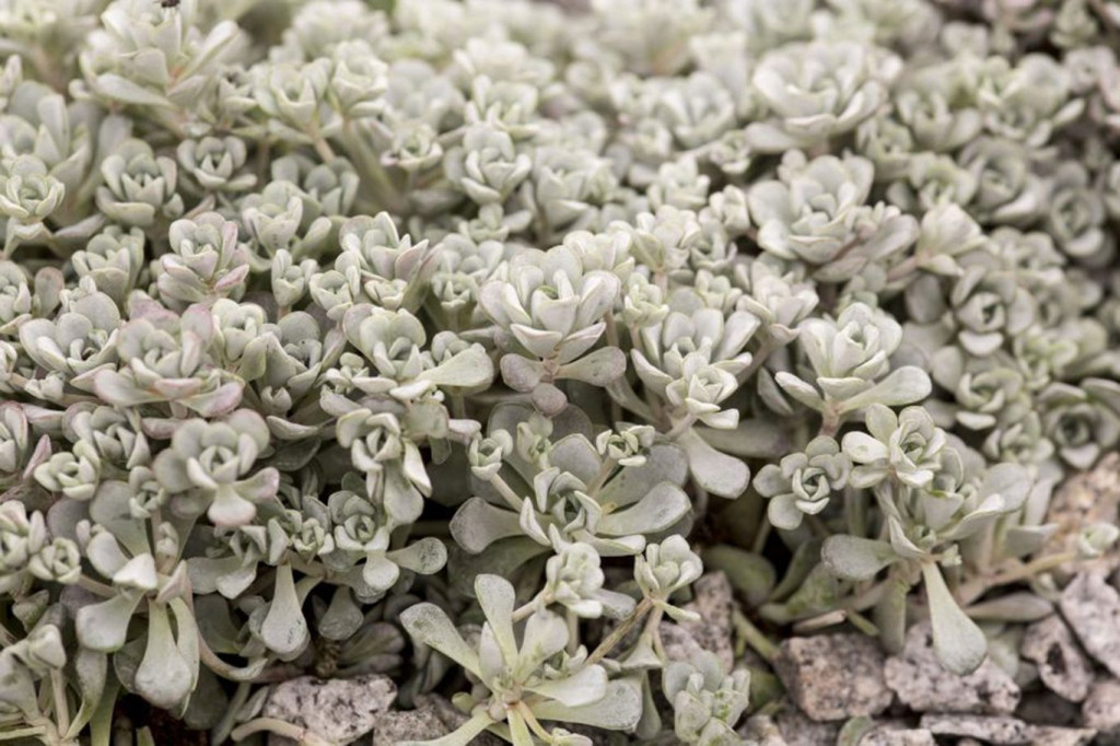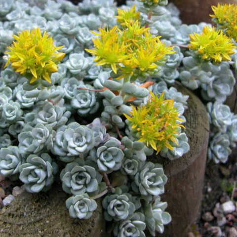 Sedum spathulifolium ‘Cape Blanco’, yoğun rozetler oluşturan yapısı ve gümüşi–mavi tonlardaki etli yapraklarıyla özellikle kaya bahçeleri ve yer örtücü düzenlemelerde tercih edilen, düşük boylu ve dayanıklı bir sedum çeşididir. Sedum spathulifolium türünün varyetesidir. Yapraklar yuvarlağa yakın spatula formunda olup yüzeylerinde belirgin bir mumsu tabaka bulunur ve bu özellik bitkiye hem mat bir görünüm kazandırır hem de su kaybını azaltır. Bitki yatay şekilde yayılır ve zamanla sık dokulu koloniler oluşturarak bulunduğu alanı kaplar. İlkbahar sonu ile yaz başında rozetlerin arasından yükselen ince çiçek sapları üzerinde parlak sarı, yıldız formunda çiçekler açar ve bu çiçeklenme gri-mavi yapraklarla güçlü bir renk kontrastı oluşturur.