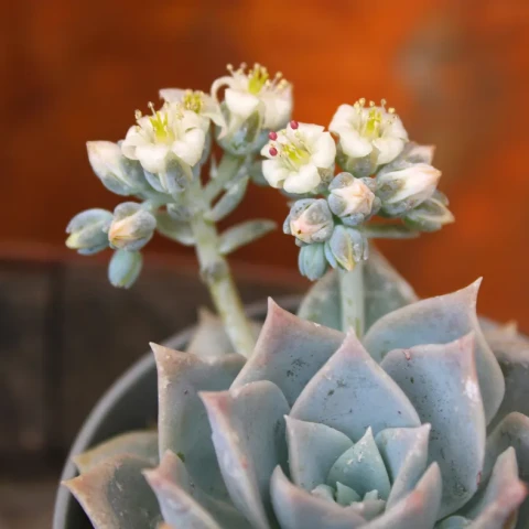 edum suaveolens, Crassulaceae familyasına ait, çok yıllık ve rozet formu belirgin bir Sedum türüdür. Türün doğal yayılışı Orta Amerika, özellikle Meksika’nın yüksek rakımlı bölgeleridir. Doğal yaşam alanlarında kayalık yamaçlarda, ince ve mineral ağırlıklı toprak tabakaları üzerinde gelişir. Bitki genellikle tekli veya gevşek kümeler oluşturan rozetler halinde büyür. Gövde yapısı kısa ve kalındır. Zamanla yan sürgünler oluşturarak sınırlı da olsa çoğalma gösterebilir. Sedum suaveolens yaprakları geniş, etli ve spatula formuna yakın yapıdadır. Yapraklar rozet çevresinde üst üste dizilerek simetrik bir görünüm oluşturur. Yaprak yüzeyi pürüzsüzdür ve ince bir mumsu tabaka ile kaplıdır. Bu tabaka, su kaybını azaltan fizyolojik bir adaptasyondur. Yaprak rengi genellikle açık yeşil ile gri-yeşil tonları arasında değişir. Yüksek ışık koşullarında yaprak uçlarında sarımsı veya soluk pembe renklenmeler gözlemlenebilir. Yaprak dokusu yüksek oranda su depolama kapasitesine sahiptir.