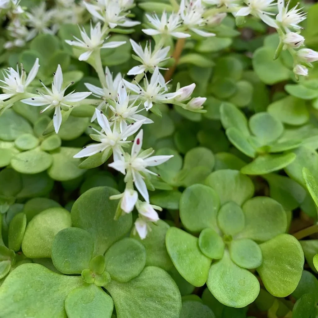 Sedum ternatum çiçeklenme döneminde ince saplar üzerinde beyaz renkte, yıldız formunda çiçekler oluşturur. Çiçekler genellikle ilkbahar sonu ile yaz başında görülür. Çiçeklenme süreci kısa sürelidir. Çiçekler solduktan sonra bitkiden ayrılabilir. Üretimi çelik yöntemiyle kolaylıkla yapılabilir. Gövdeden alınan parçalar uygun koşullarda kısa sürede köklenir. Üretim için en uygun dönem ilkbahar aylarıdır. Bu dönemde sınırlı miktarda sukulent gübresi uygulanabilir. Düzenli bakım sağlandığında Sedum ternatum dengeli ve sağlıklı bir gelişim gösterir.