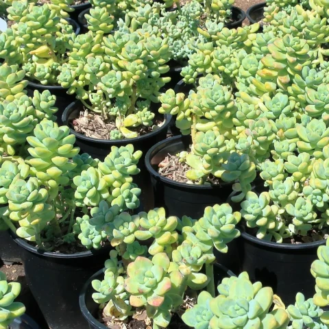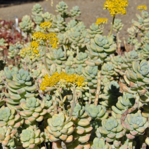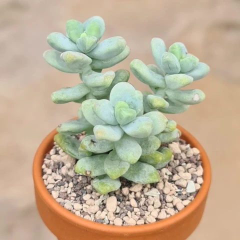 Sedum treleasei, Crassulaceae familyasına ait, kompakt yapısı ve karakteristik açık mavi–yeşil yaprak rengi ile tanınan bir sedum türüdür. Doğal yaşam alanlarında genellikle kurak iklim etkisinin görüldüğü, iyi drene olan taşlı zeminlerde gelişim gösterir. Gövde yapısı kısa ve kalındır. Bitki, sık yaprak dizilimi sayesinde yoğun ve dolgun bir görünüm oluşturur. Zamanla yan sürgünler geliştirerek kümelenme eğilimi gösterebilir. Sedum treleasei yaprakları etli, kısa ve oval formdadır. Yaprak uçları yuvarlak yapıdadır ve gövde etrafında sık şekilde dizilmiştir. Yaprak yüzeyi pürüzsüzdür ve belirgin bir pudramsı tabaka ile kaplıdır. Bu tabaka yapraklara açık mavi, griye çalan yeşil bir renk kazandırır. Yaprak dokusu su depolamaya uygundur. Bu özellik, bitkinin uzun süre susuzluğa dayanmasını sağlar. Yoğun güneş ışığı altında yaprak renginde hafif sarımsı veya pastel tonlara geçiş gözlenebilir.