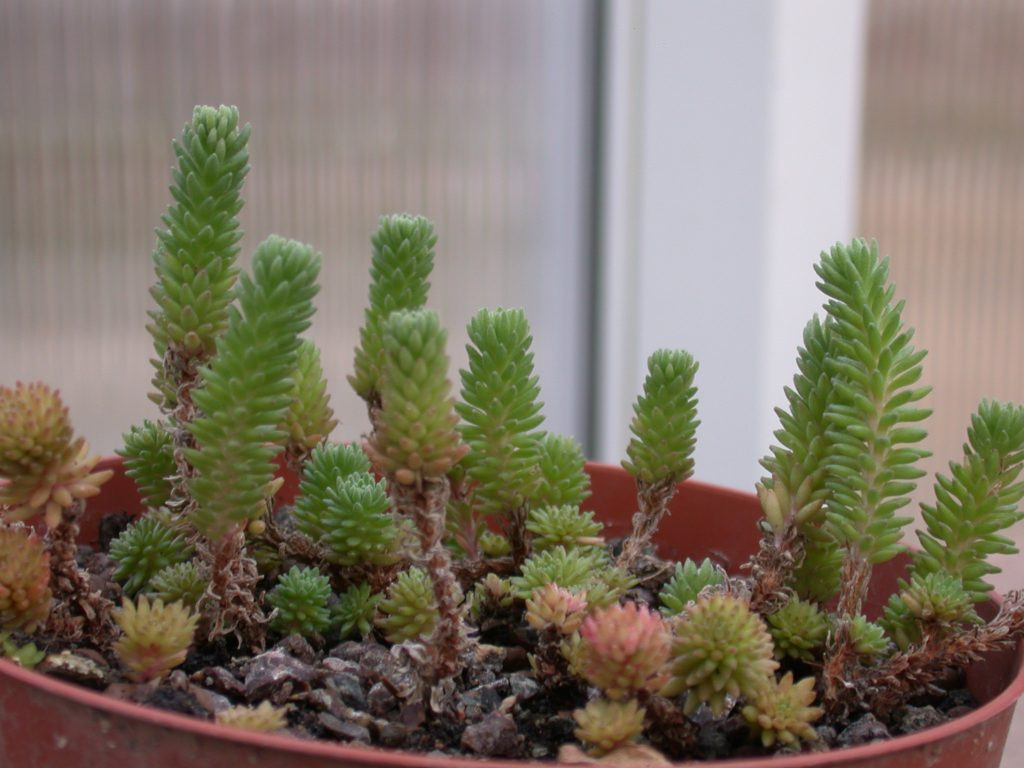 Sedum tuberiferum, Crassulaceae familyasına ait, yer altında oluşturduğu küçük yumrular (tüberler) ile diğer sedum türlerinden ayrılan özgün bir türdür. Doğal yayılış alanlarında taşlık yamaçlar, gevşek dokulu topraklar ve suyun hızla süzüldüğü açık alanlar bulunur. Bitki, yer üstünde ince gövdelerle gelişirken yer altında besin depolayan yapılar oluşturarak çevresel koşullara uyum sağlar. Bu özellik, türün mevsimsel değişimlere karşı dayanıklılığını artırır. Sedum tuberiferum yaprakları küçük, etlidir. Yapraklar gövde boyunca düzenli şekilde dizilir. Yaprak dokusu su tutmaya uygundur. Renkleri çoğunlukla açık yeşil tonlardadır. Işık yoğunluğu arttıkça yaprak yüzeyinde hafif sarımsı veya soluk kırmızımsı renklenmeler görülebilir. Yaprak yüzeyi pürüzsüzdür ve ince bir mumsu tabaka içerir. Bu yapı, bitkinin nem kaybını sınırlandırır.