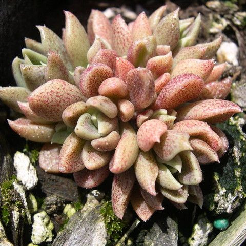 Sinocrassula densirosulata, Crassulaceae familyası içinde yer alan, yoğun rozet yapısı ve renkli yaprak dokusuyla tanınan, kompakt gelişim gösteren bir sukulent türüdür. Doğal yayılış alanları ağırlıklı olarak Çin’in yüksek rakımlı ve taşlık bölgeleridir. Bu habitatlar; iyi drene olan, suyu tutmayan zeminler ve yüksek ışık koşullarıyla karakterizedir. Bitkinin morfolojik ve fizyolojik özellikleri bu çevresel koşullara uyum sağlayacak şekilde evrimleşmiştir. Ev ve koleksiyon ortamındaki bakım ihtiyaçları da bu doğal koşullar temel alınarak şekillendirilmelidir. Sinocrassula densirosulata yaprakları kısa gövde etrafında son derece sık dizilmiş durumdadır. Yapraklar kalın, etli ve sert dokuludur; bu yapı bitkinin su depolama kapasitesini artırır. Yaprak yüzeyi pürüzsüzdür ve çoğu bireyde mat ya da yarı mat bir görünüm sergiler. Işık şiddeti arttıkça yaprak renkleri daha koyu ve doygun hale gelir. Düşük ışık koşullarında ise yaprak rengi açılabilir ve rozet yapısı daha gevşek bir form kazanabilir. Yaprak dokusu, sürekli nemli toprak koşullarında hızla bozulmaya yatkındır.