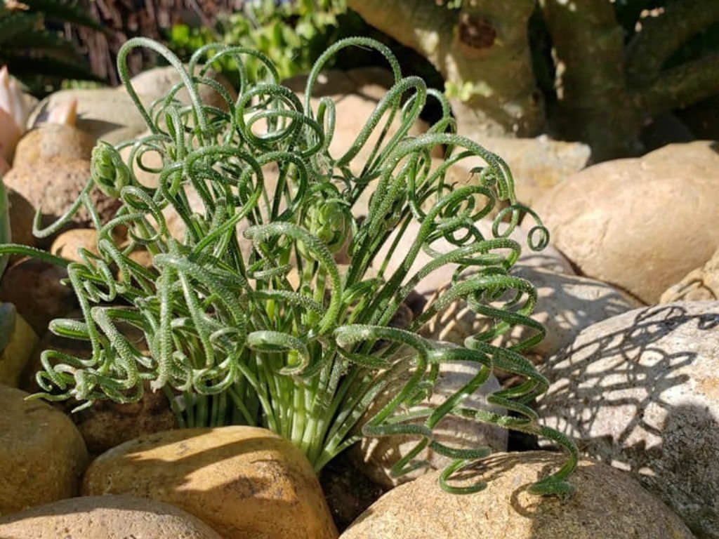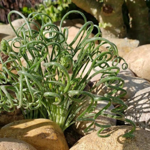 Albuca namaquensis, Albuca cinsi içerisinde yer alan, belirgin soğan yapısı ve ince, kıvrılma eğilimli yapraklarıyla tanınan bir sukulenttir. Doğal yayılım alanı Güney Afrika’nın kurak ve yarı kurak bölgeleridir. Bu tür, yer altında veya yüzeye yakın konumlanan soğan yapısı sayesinde su ve besin depolayarak uzun süreli kurak koşullara adapte olur. Mevsimsel gelişim döngüsü gösterir; serin dönemlerde aktif büyüme gözlemlenirken, sıcak dönemlerde dinlenme evresine girme eğilimi belirgindir. Albuca namaquensis’in yaprakları ince, uzun ve esnek yapıdadır. Yaprak yüzeyi genellikle hafif pütürlü veya mikroskobik tüylerle kaplı olabilir. Bu yapı, ışık yansımalarını düzenleyerek su kaybını azaltmaya yardımcı olur. Yapraklar çoğunlukla tabandan rozet formunda çıkar ve uçlara doğru kıvrılma eğilimi gösterebilir. Kıvrım derecesi çevresel koşullara bağlı olarak değişkenlik gösterir; yüksek ışık altında daha kompakt ve belirgin kıvrımlar oluşurken, düşük ışıkta yapraklar düzleşerek uzama eğilimi gösterir. Yaprak rengi genellikle açık yeşil ile orta yeşil tonları arasında değişir. Yaprak uçlarında kuruma veya deformasyon, çoğunlukla sulama hataları veya düşük nem dengesine bağlı olarak ortaya çıkar.
