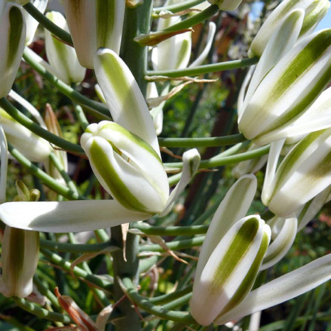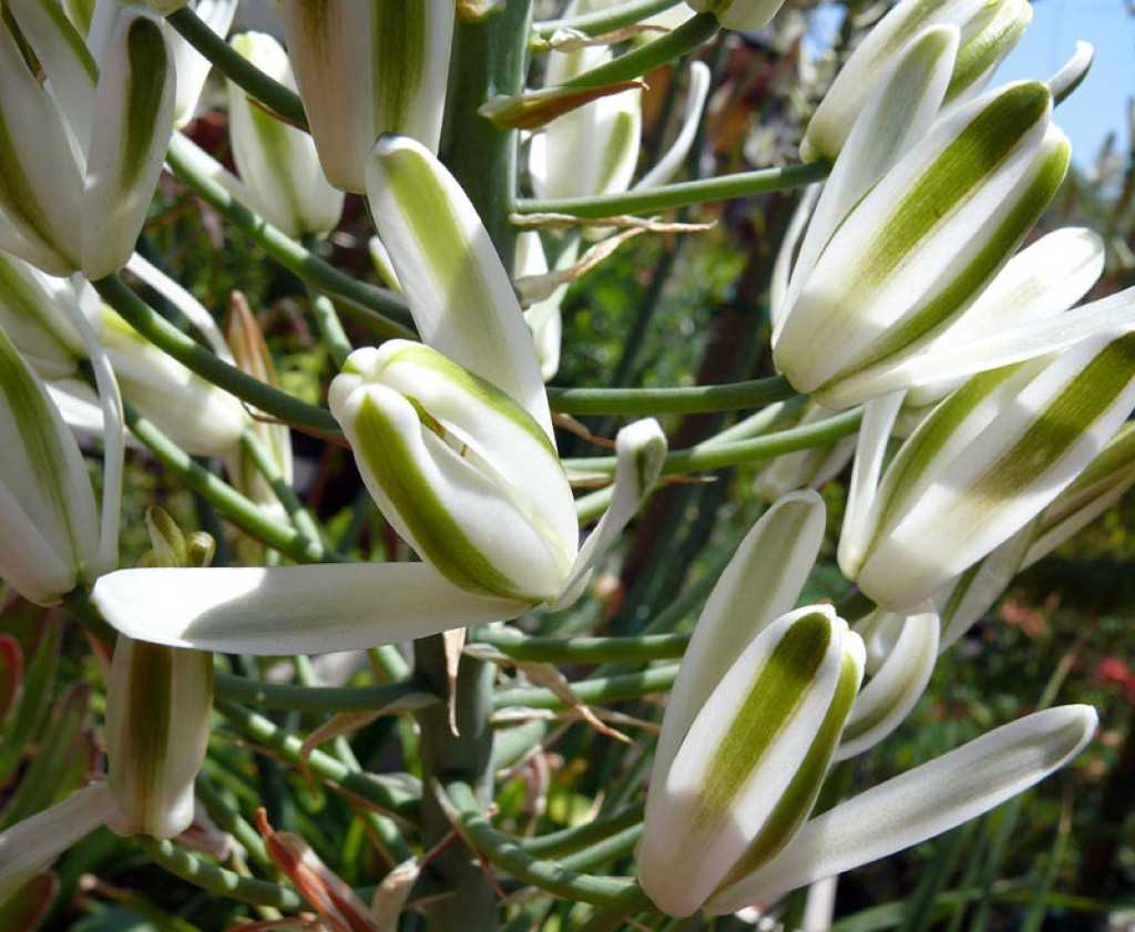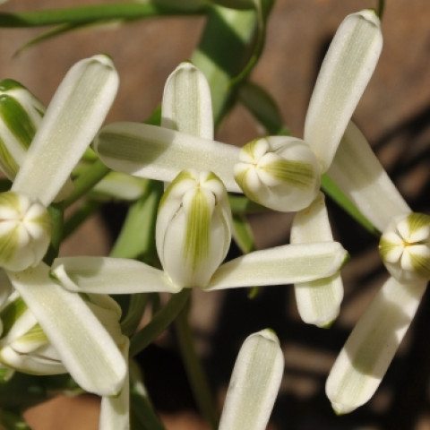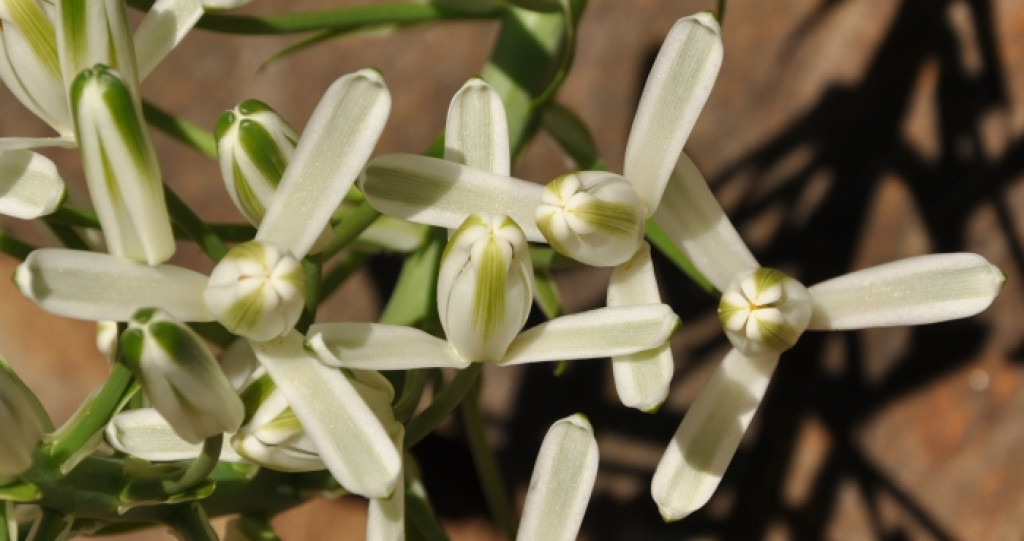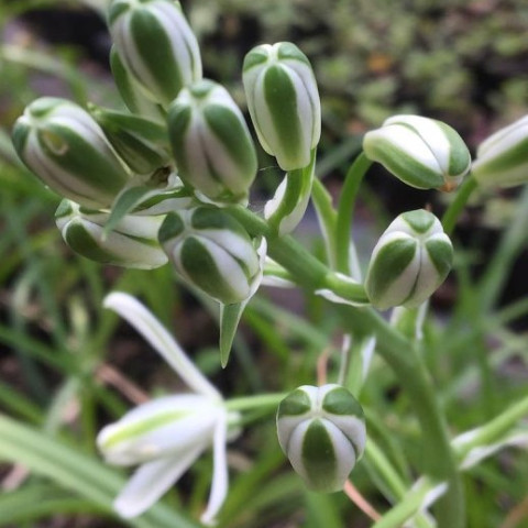 Albuca nelsonii, Güney Afrika kökenli, soğanlı ve çok yıllık bir türdür. Diğer Albuca türlerine kıyasla daha iri gelişim gösteren bu bitki, hem yaprak yapısı hem de belirgin çiçek sapları ile dikkat çeker. Soğan yapısı, su ve besin depolama işlevi üstlenerek bitkinin çevresel streslere karşı dayanıklılığını artırır. Tür, mevsimsel büyüme döngüsüne sahiptir ve uygun koşullarda düzenli gelişim sergiler. Albuca nelsonii yaprakları uzun, şerit formda ve esnek yapıdadır. Yapraklar doğrudan soğandan çıkar ve genellikle yayılıcı ya da hafif kavisli şekilde büyür. Yaprak yüzeyi düz ve çoğunlukla parlak görünür. Renk tonları açık yeşilden orta yeşile kadar değişiklik gösterebilir. Bu türde yapraklar diğer bazı Albuca türlerinde görülen spiral ya da kıvrımlı formdan farklı olarak düz ve lineer yapıdadır. Yeterli ışık sağlandığında yapraklar daha dik ve kompakt gelişim gösterir; düşük ışık koşullarında ise uzama ve form kaybı görülebilir. Bitki, uzun ve dik bir çiçek sapı oluşturur. Bu sap üzerinde çok sayıda tomurcuk gelişir ve çiçekler salkım halinde açar. Çiçekler genellikle beyaz zemin üzerine yeşil şeritli yapıdadır. Altı parçalı çiçek formu tipiktir ve çiçekler hafif sarkık pozisyonda açabilir. Çiçeklenme dönemi, bitkinin aktif büyüme evresi ile doğrudan ilişkilidir. Sağlıklı bireylerde çiçek sayısı yüksek olabilir ve uzun süreli çiçeklenme gözlemlenebilir.
