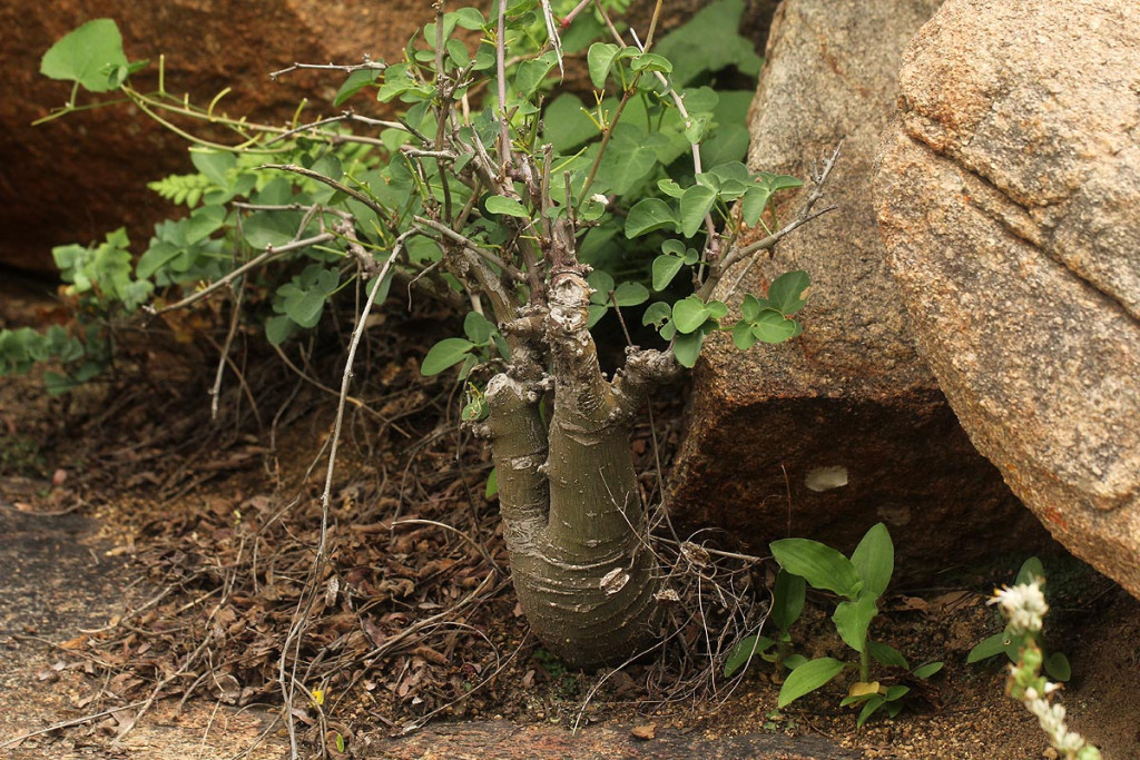 Adenia fruticosa, Passifloraceae familyasına ait, kaudeksli yapı göstermeyen ya da kaudeksi çok az belirgin olan, daha çok çalımsı (fruticosa karakterli) gelişimiyle öne çıkan bir Adenia türüdür. Türün doğal yayılışı Afrika kıtasının doğu ve güneydoğu bölgelerine uzanır. Özellikle Tanzanya, Kenya ve çevresindeki yarı kurak savanlar, açık çalılıklar ve taşlı düzlükler Adenia fruticosa’nın doğal yaşam alanları arasında yer alır. Bu bölgelerde iklim belirgin şekilde mevsimseldir; yağışlar kısa dönemlerde yoğunlaşır, yılın büyük bölümünde ise sıcak ve kurak koşullar hâkimdir. Adenia fruticosa, bu çevresel şartlara uyum sağlayarak suyu sınırlı kullanmaya yönelik bir büyüme stratejisi geliştirmiştir ve yağışlı dönemlerde aktif gelişim gösterir. Adenia fruticosa, diğer kaudeksli Adenia türlerinden farklı olarak daha dallı ve odunsu bir gövde yapısına sahiptir. Gövde tabanı zamanla kalınlaşabilir ancak belirgin, şişkin bir kaudeks formu oluşturmaz. Gövdeler sert, odunsu ve yaşlandıkça daha koyu tonlara dönen bir kabuk yapısı kazanır. Bitki genel olarak çalı formunda gelişir ve çok sayıda yan dal oluşturur. Sürgünler esnek yapıda olup tırmanıcı özellik gösterebilir, ancak bazı bireylerde daha dik gelişim de gözlenebilir. Yaprak dokusu ince, yüzeyi pürüzsüzdür. Aktif büyüme döneminde yapraklar canlı yeşil renktedir. Kuraklık veya serin dönemlerde yaprak dökümü yaygındır ve bu durum türün doğal döngüsünün bir parçasıdır.