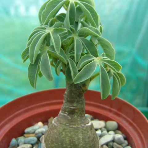 Adenia glauca, Passifloraceae familyası içinde yer alan ve kaudeksli gelişim gösteren Adenia türlerinden biridir. Türün doğal yayılışı Afrika kıtasının doğu ve güney bölgelerine uzanır. Özellikle Tanzanya, Zambiya ve Mozambik çevresindeki yarı kurak alanlar, açık savanlar ve kayalık araziler Adenia glauca’nın doğal yaşam ortamları arasında bulunur. Bu bölgelerde iklim yıl boyunca düzensiz yağışlarla karakterizedir. Uzun süren kurak dönemler ile kısa ama yoğun yağışlı sezonlar bitkinin gelişim ritmini belirler. Adenia glauca, bu koşullara uyum sağlamak amacıyla suyu gövdesinde depolayan bir yapı geliştirmiştir ve büyümesini büyük ölçüde mevsimsel döngülere göre sürdürür. Adenia glauca’nın en dikkat çeken özelliği belirgin kaudeks yapısıdır. Kaudeks genellikle yuvarlak veya basık formda gelişir ve zamanla kalınlaşarak sert bir dış doku kazanır. Yüzeyi pürüzsüz ya da hafif çatlaklı olabilir. Renk tonu açık gri, kül rengi veya açık kahverengi aralığında değişkenlik gösterirken, bir tarafı yeşildir. Bu yapı, bitkinin suyu uzun süre muhafaza etmesini sağlar. Kaudeksten çıkan sürgünler ince, uzun ve sarılıcı karakterdedir. Sürgünler büyüme döneminde hızla uzar ve çevredeki desteklere tutunabilir.